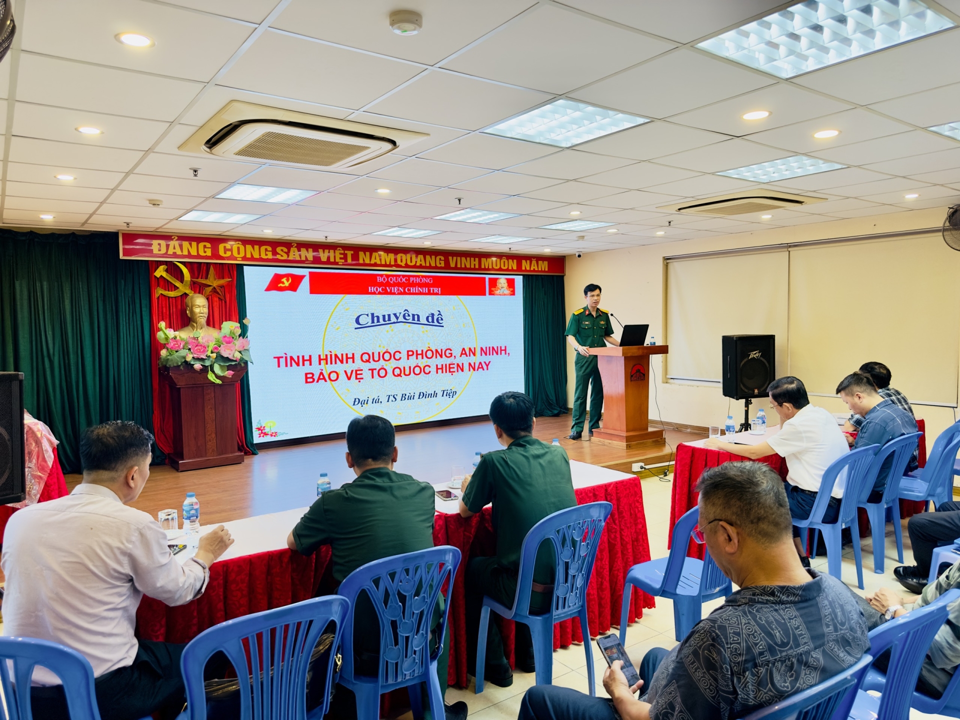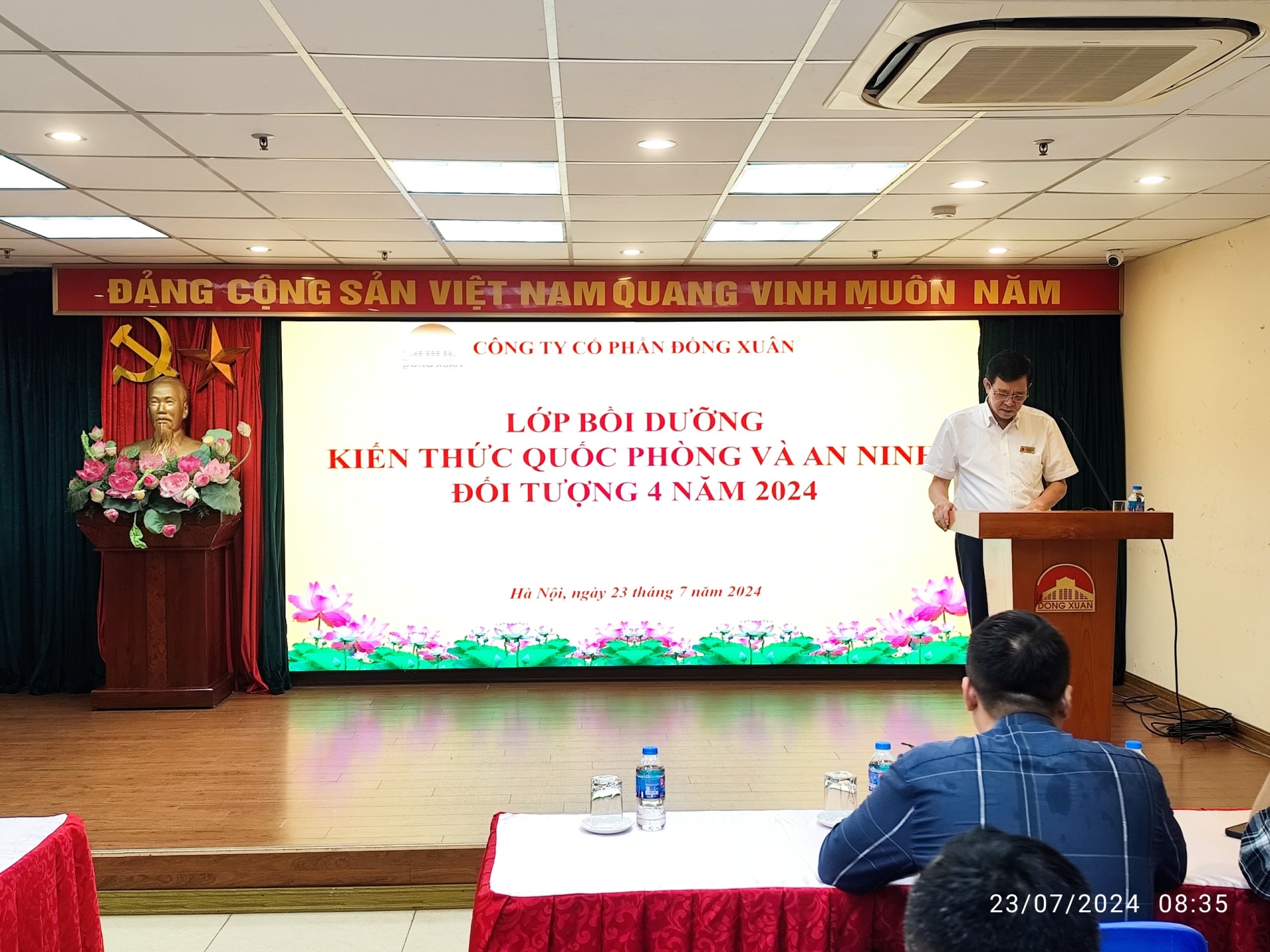 Lớp bồi dưỡng kiến thức quốc phòng đối tượng 4 tại Công ty Cổ phần Đồng Xuân có 73 học viên là các đồng chí lãnh đạo phòng ban đơn vị, Đảng viên trong cơ quan, tổ chức trong 04 ngày từ ngày 23/7/2024 đến ngày 26/7/2024, nghiên cứu về 9 chuyên đề đó là: