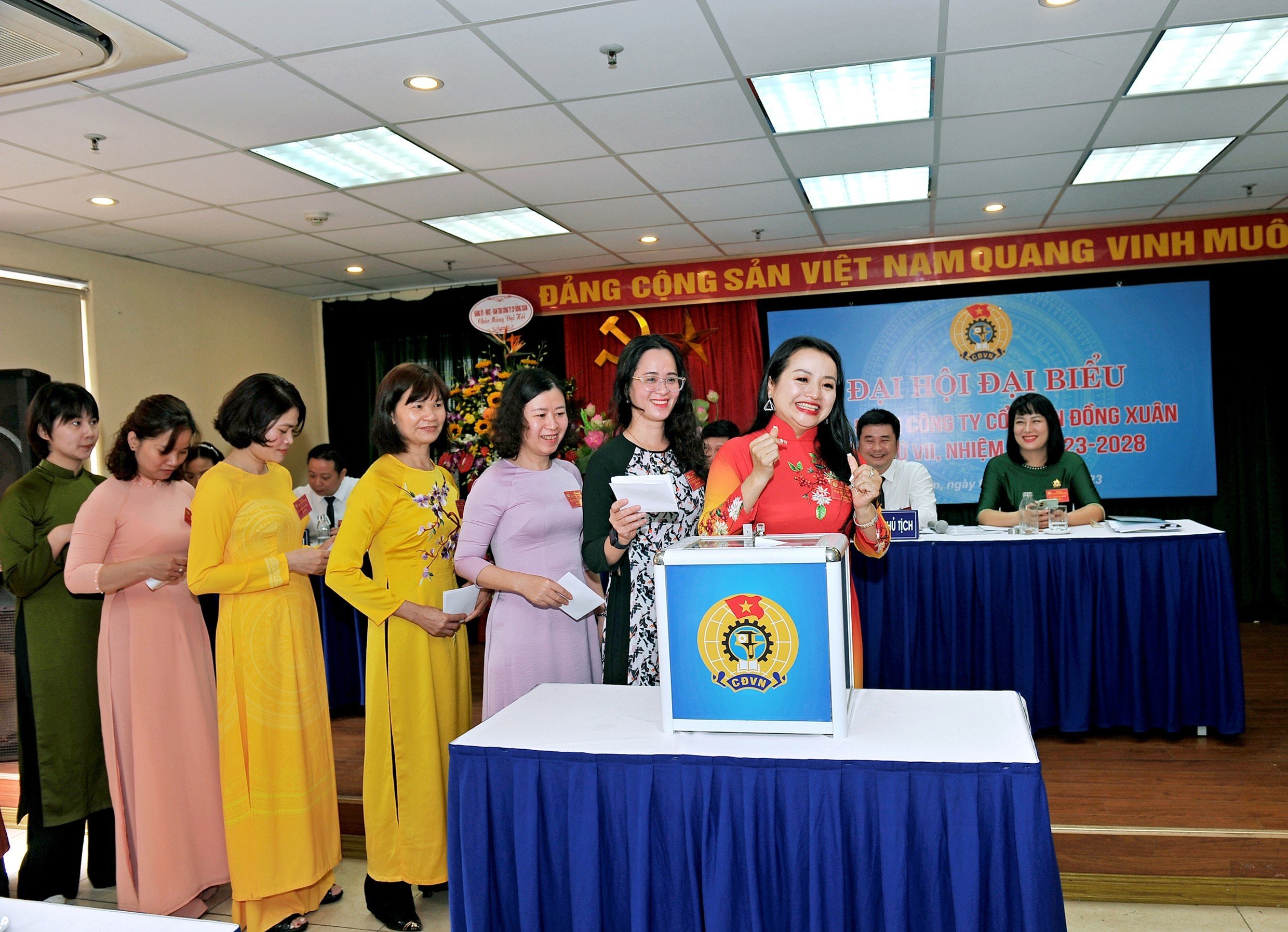 Thực hiện Điều lệ Công đoàn Việt Nam, với tinh thần tập trung, dân chủ, Đại hội đã bầu Ban Chấp hành công đoàn Công ty Cổ phần Đồng Xuân khóa VII, nhiệm kỳ 2023 - 2028 gồm 11 đồng chí; bầu đoàn đại biểu dự Đại hội Công đoàn quận Hoàn Kiếm lần thứ XIX gồm 02 đồng chí đại biểu chính thức