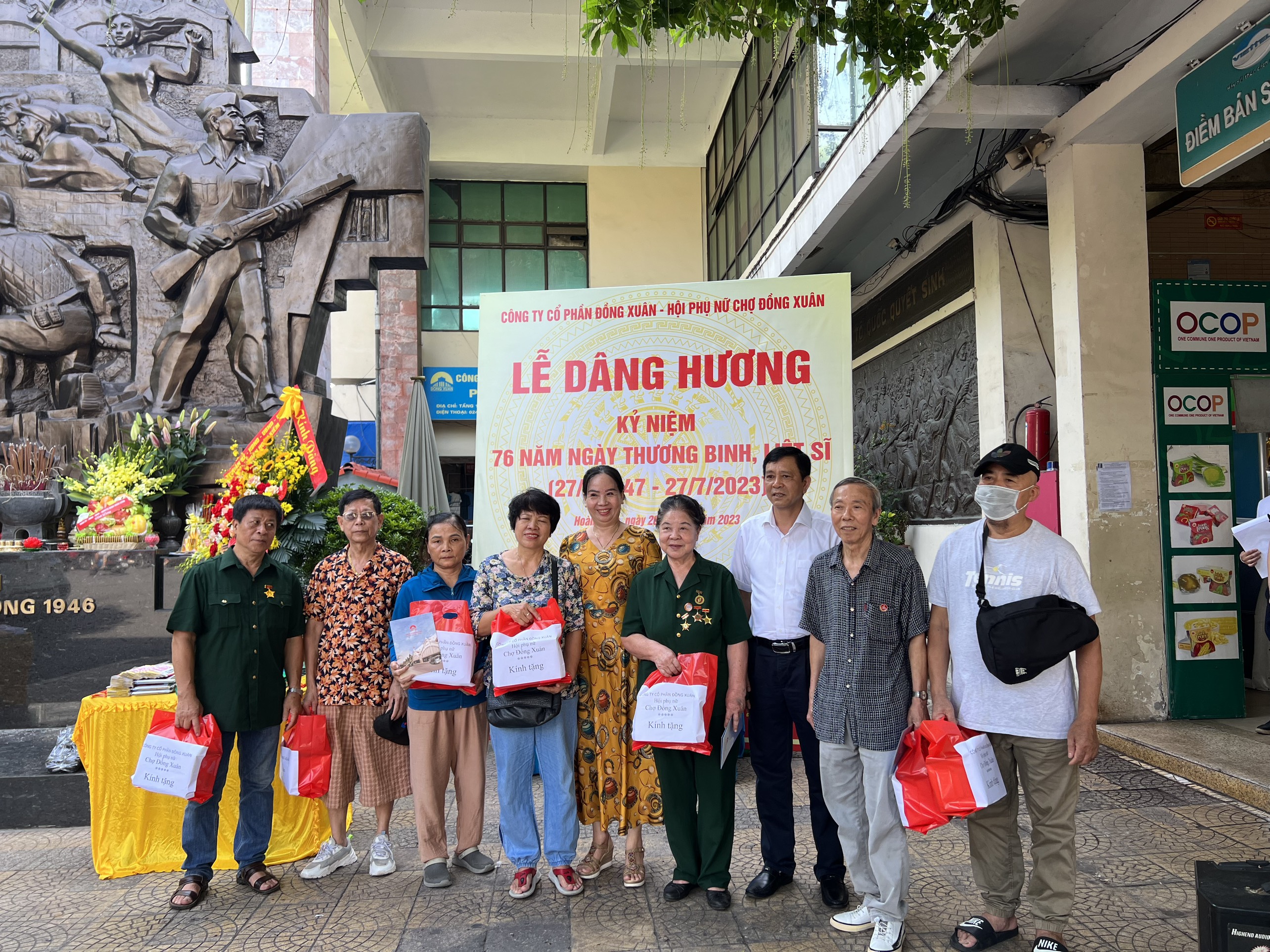 Cũng tại Lễ dâng hương, Công ty cổ phần Đồng Xuân đã công bố Quyết định và trao khen thưởng đối với 07 đồng chí Thương binh đã có nhiều đóng góp vào phong trào xây dựng chợ Đồng Xuân an toàn, văn minh, hiệu quả; cùng với đó Công ty Cổ phần Đồng Xuân cùng Hội phụ nữ chợ đã dành tặng 34 xuất quà gửi tới 34 Đ/c là thương binh, thân nhân liệt sĩ hiện đang công tác và kinh doanh tại chợ Đồng Xuân