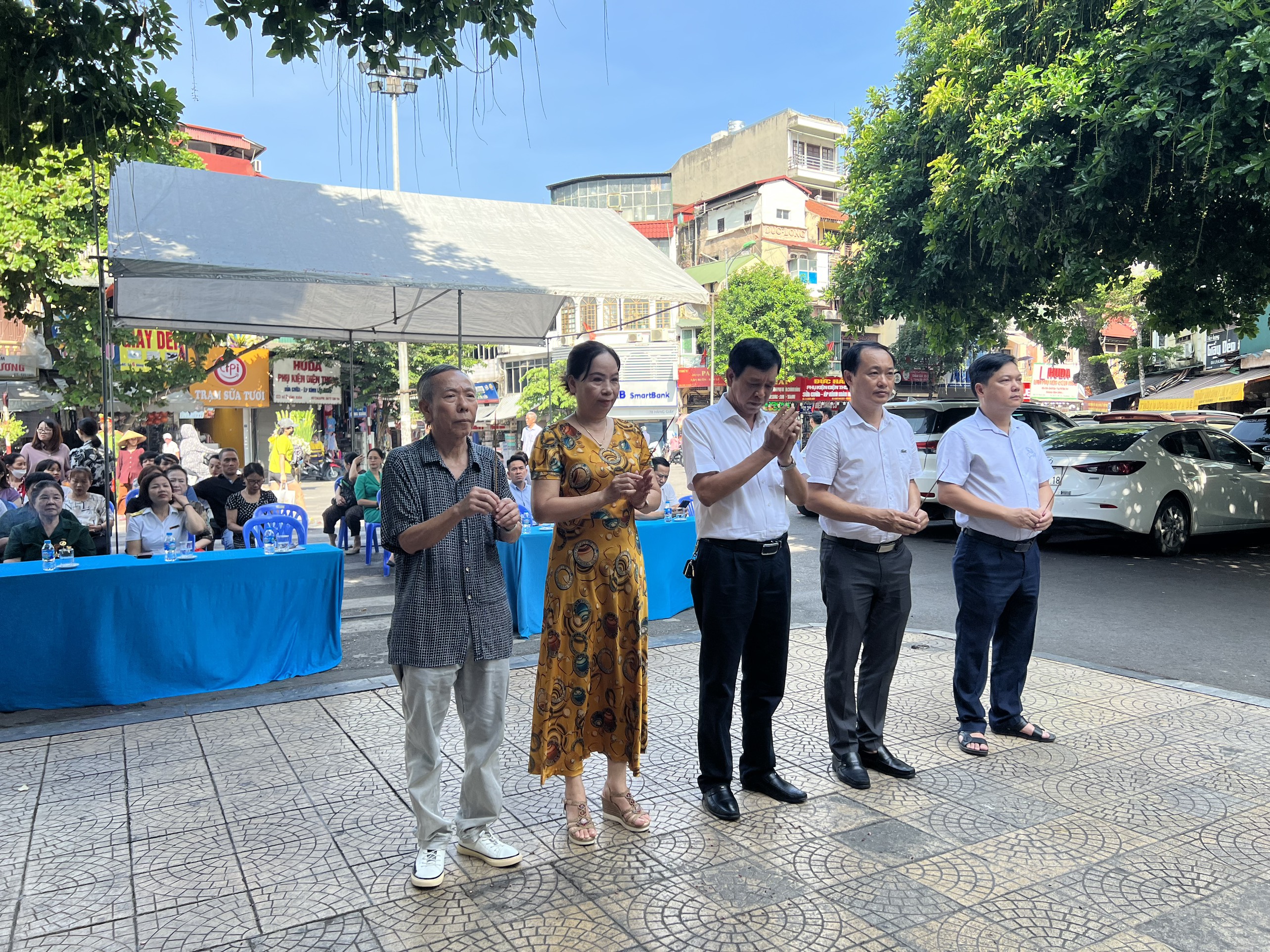 cùng các Đ/c đại diện lãnh đạo UBND phường Đồng Xuân, Hội phụ nữ chợ và đại diện Thương binh đang kinh doanh tại chợ dâng hương