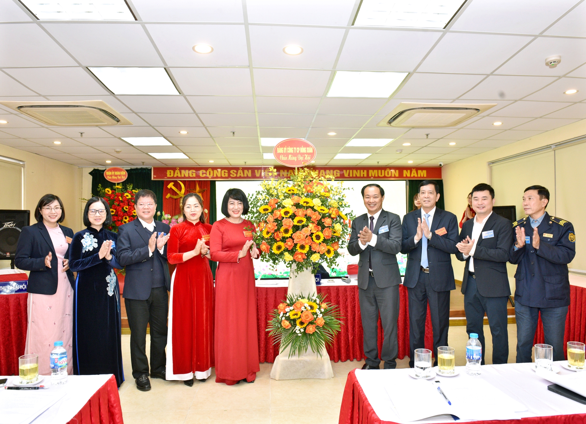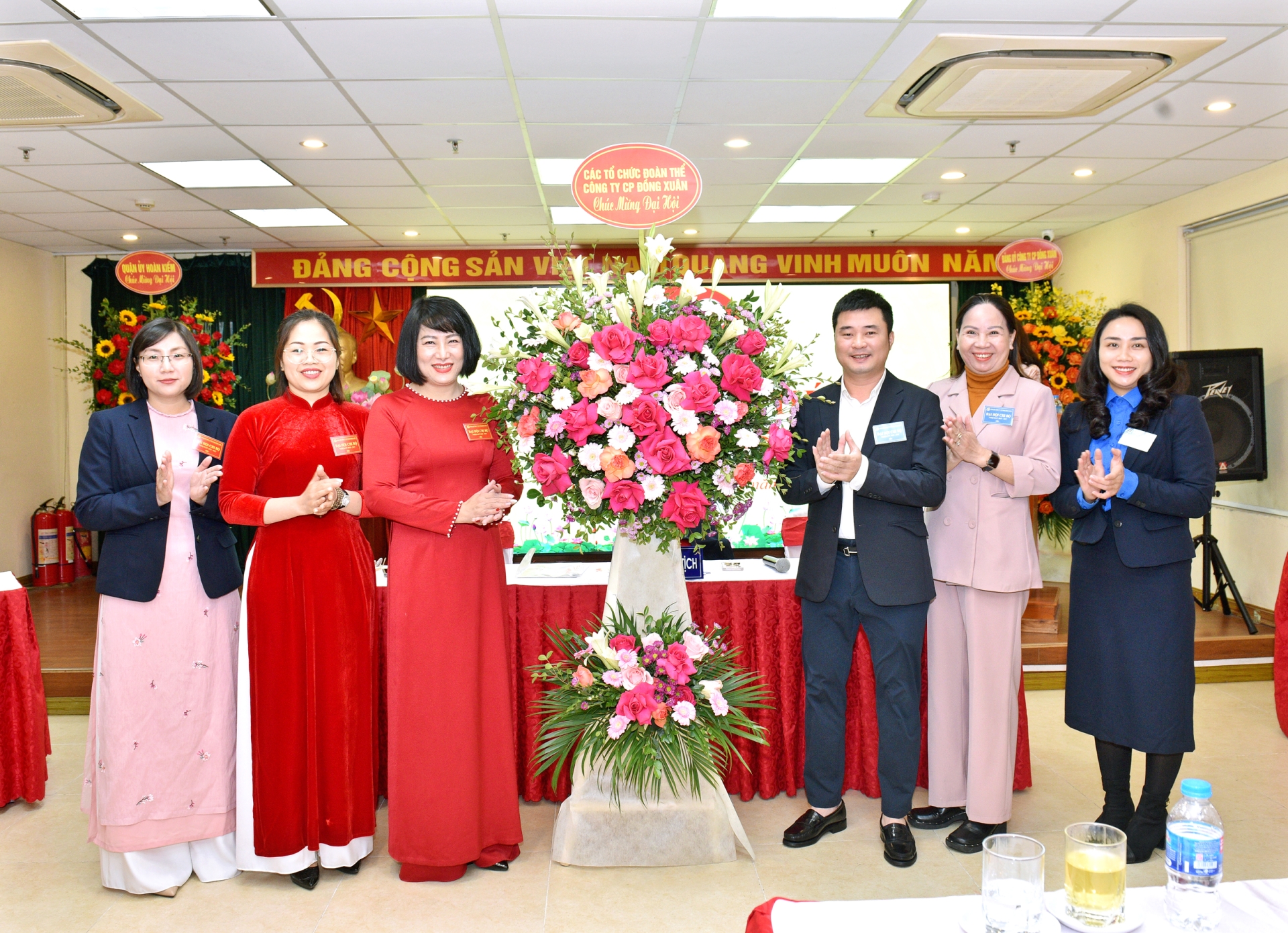 Đ/c Nguyễn Song Tùng – QUV, Bí thư Đảng ủy, Chủ tịch HĐQT Công ty cùng Ban thường vụ đảng ủy, Ban Tổng giám đốc và đại diện các chi bộ tặng hoa chúc mừng đại hội