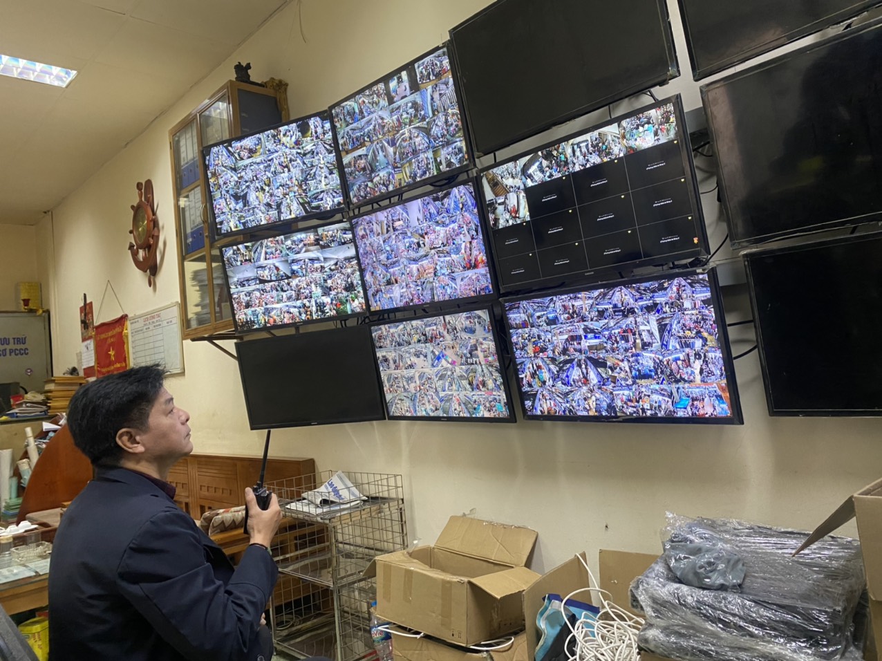 Lãnh đạo phòng Bảo vệ kiểm tra kết nối tại Trung tâm điều khiển