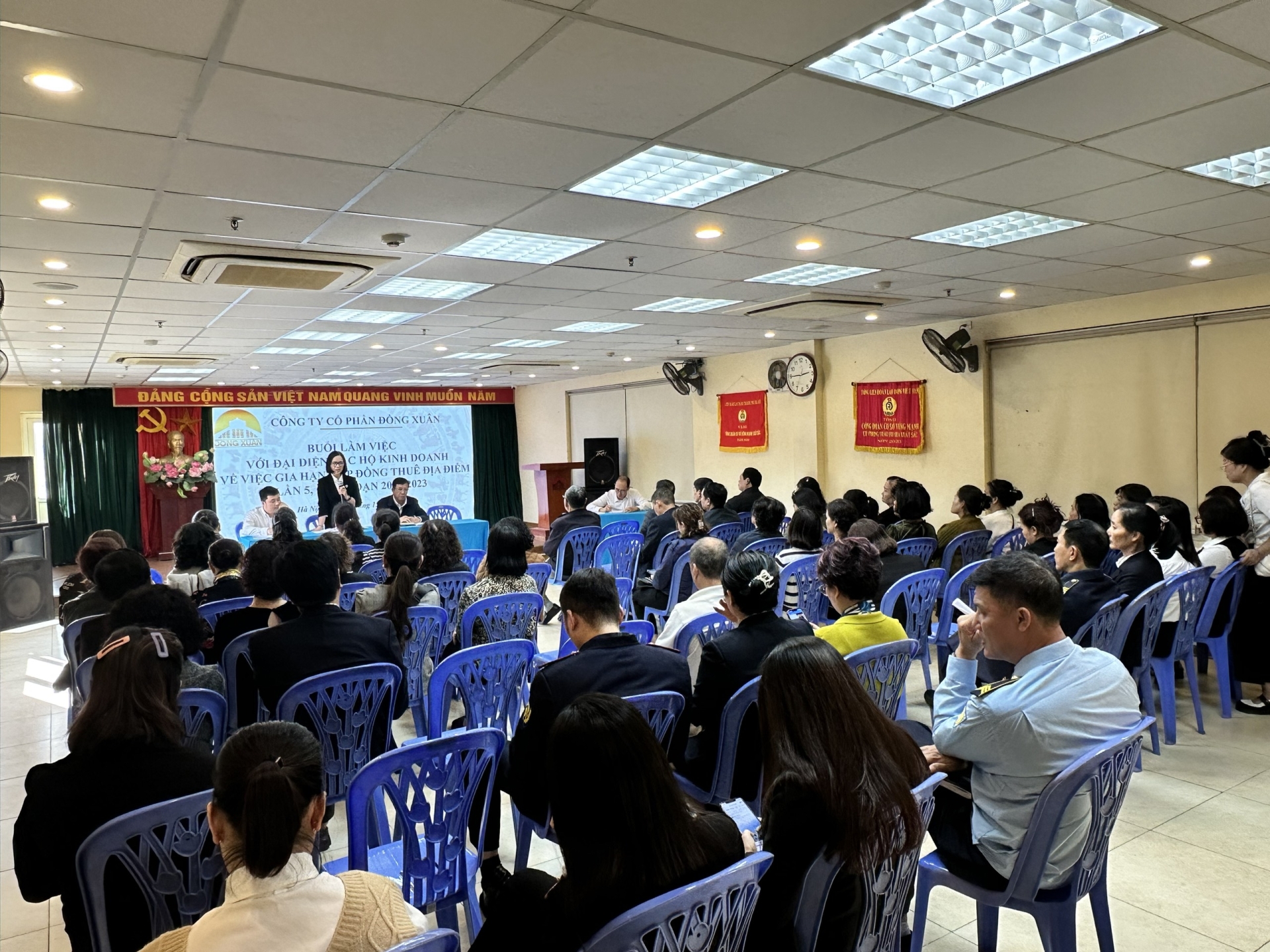 Hợp đồng thuê địa điểm kinh doanh tại Chợ Đồng Xuân lần 5 giai đoạn 2018-2023 sẽ hết hạn vào ngày 31/12/2023. Để đảm bảo thực hiện Quy chế dân chủ cũng như tính pháp lý trong hoạt động kinh doanh, Công ty Cổ phần Đồng Xuân đã họp với Ban chấp hành Hội phụ nữ chợ, các ông, bà là Tổ trưởng, Tổ phó các ngành hàng để xin ý kiến thống nhất, báo cáo Đại hội đồng cổ đông quyết định tiếp tục giữ nguyên giá và ký phụ lục hợp đồng thuê diện tích bán hàng tại chợ Đồng Xuân với các hộ kinh doanh thêm 12 tháng từ 01/01/2024 đến hết ngày 31/12/2024. Đây là động thái của Công ty Cổ phần Đồng Xuân nhằm đồng hành và chia sẻ với những khó khăn trong hoạt động kinh doanh mà các hộ kinh doanh bị ảnh hưởng sau đại dịch Covid 19.