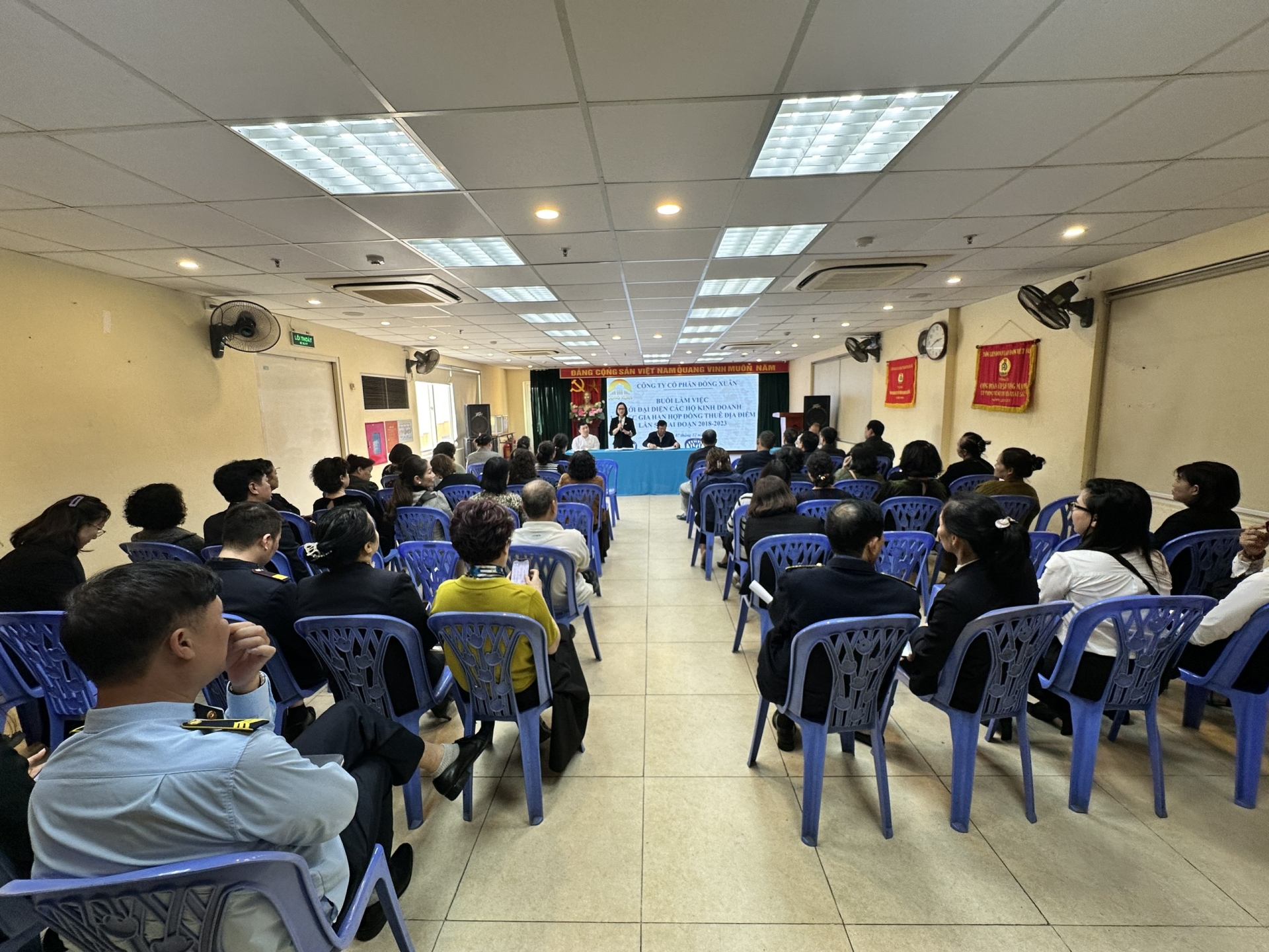 Một số hình ảnh tại buổi làm việc với Ban chấp hành Hội phụ nữ chợ, các ông, bà là Tổ trưởng, Tổ phó các ngành hàng thông báo Kế hoạch ký gia hạn phụ lục hợp đồng thu tiền giá dịch vụ sử dụng diện tích bán hàng tại chợ Đồng Xuân