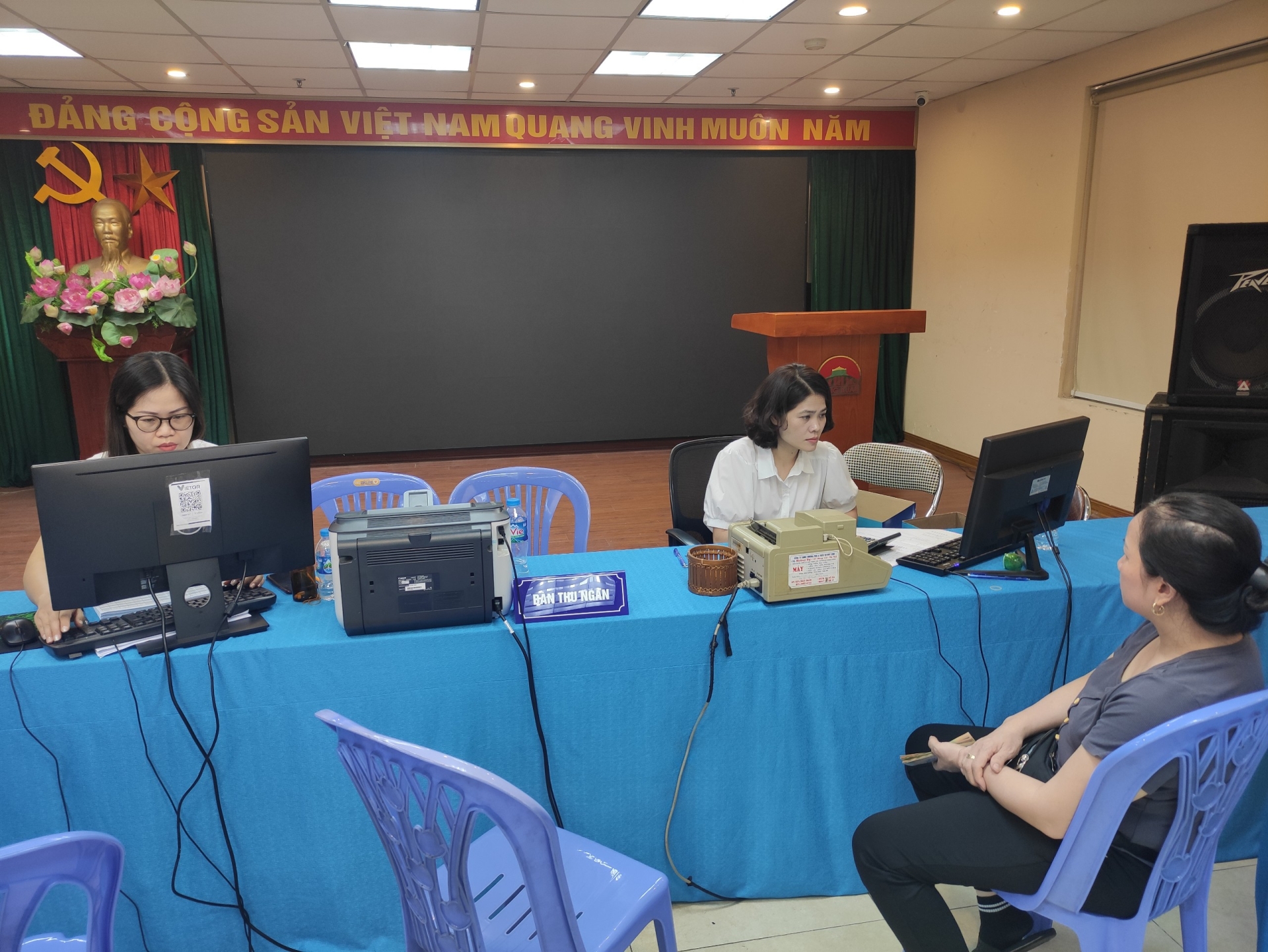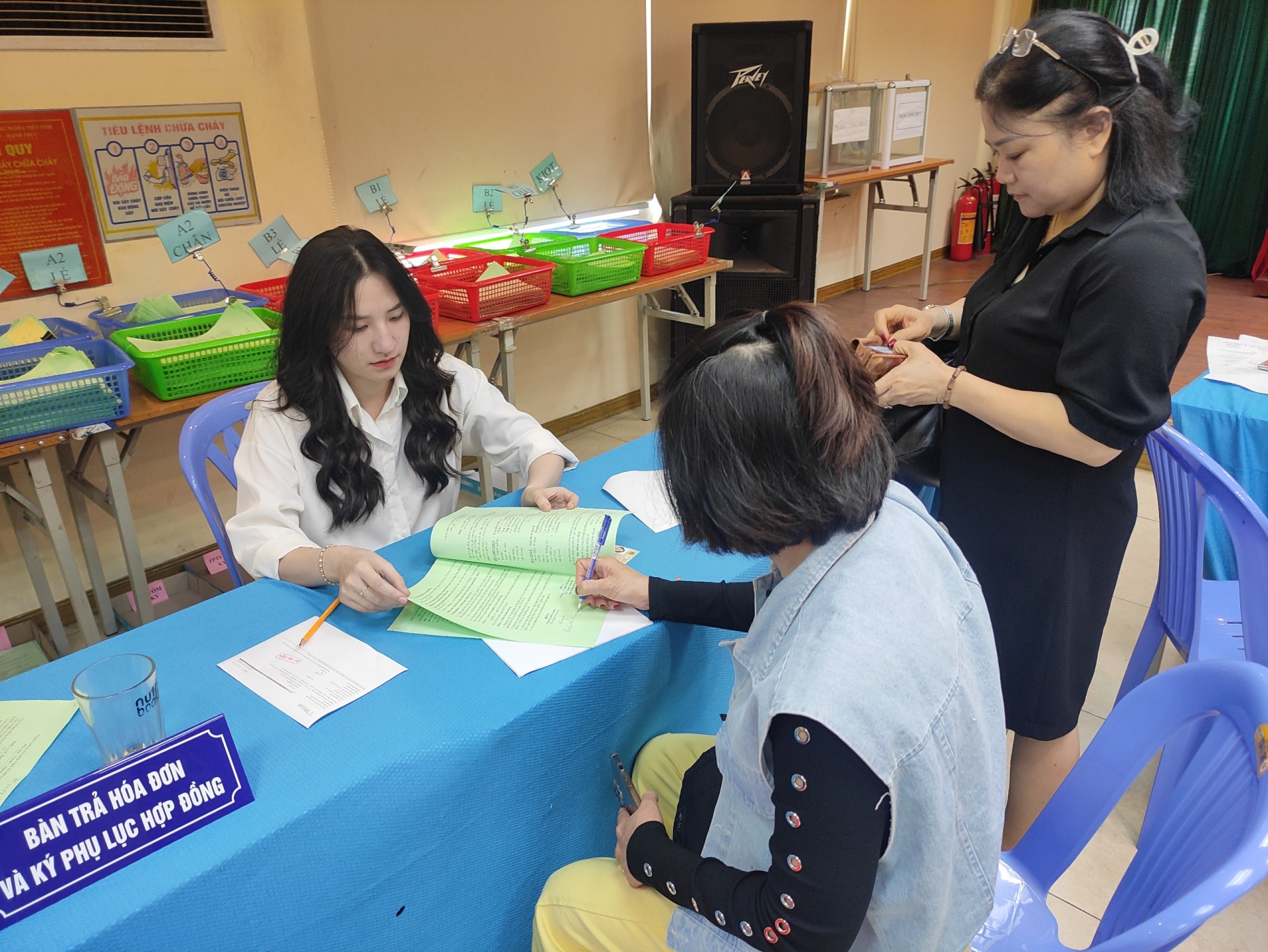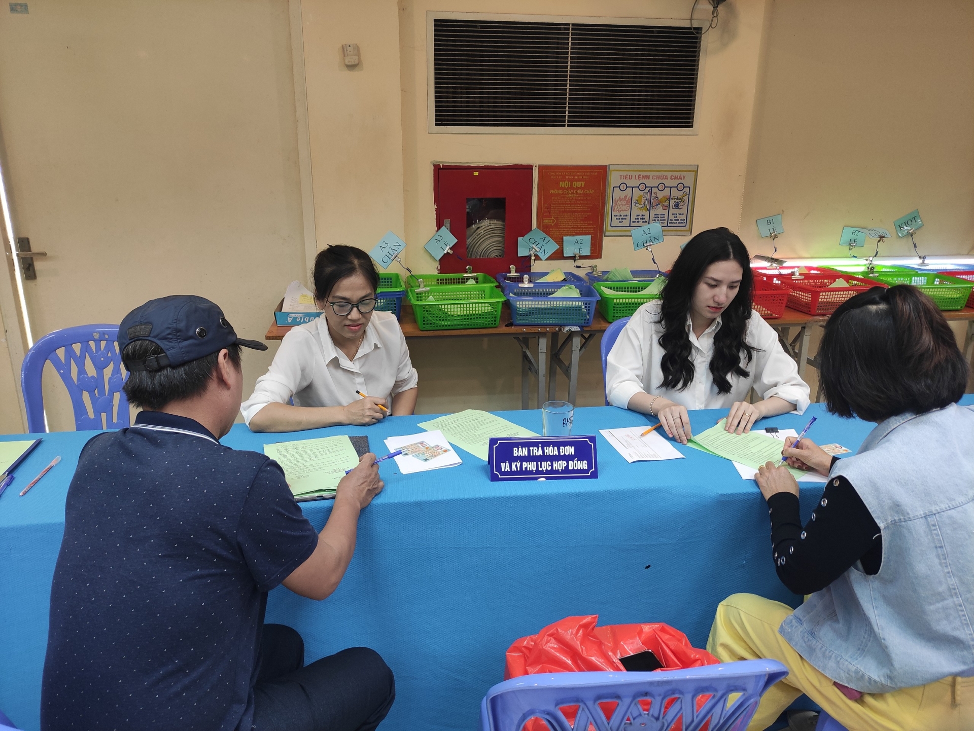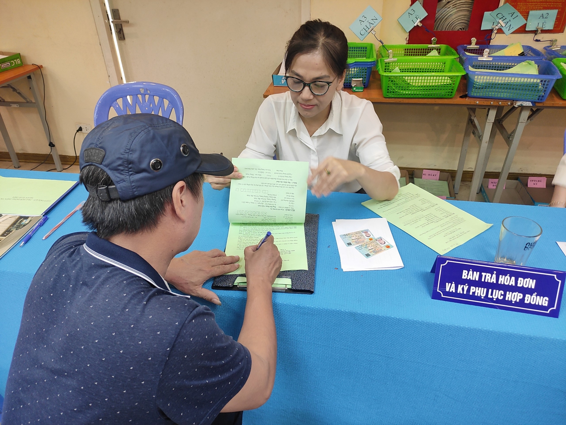 Bàn tiếp nhận thông tin các hộ kinh doanh lên lên ký phụ lục hợp đồng