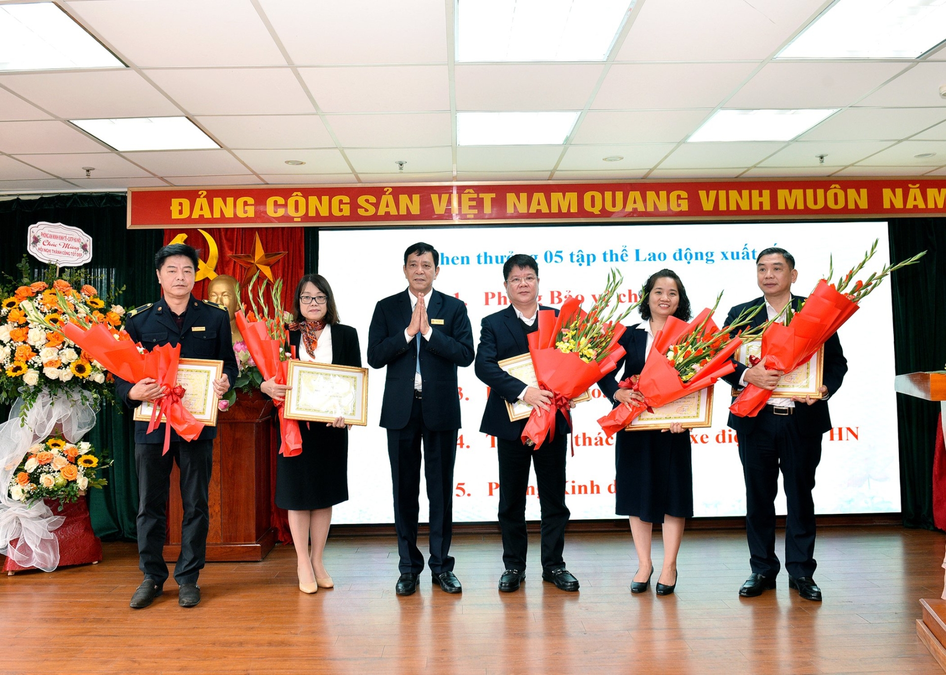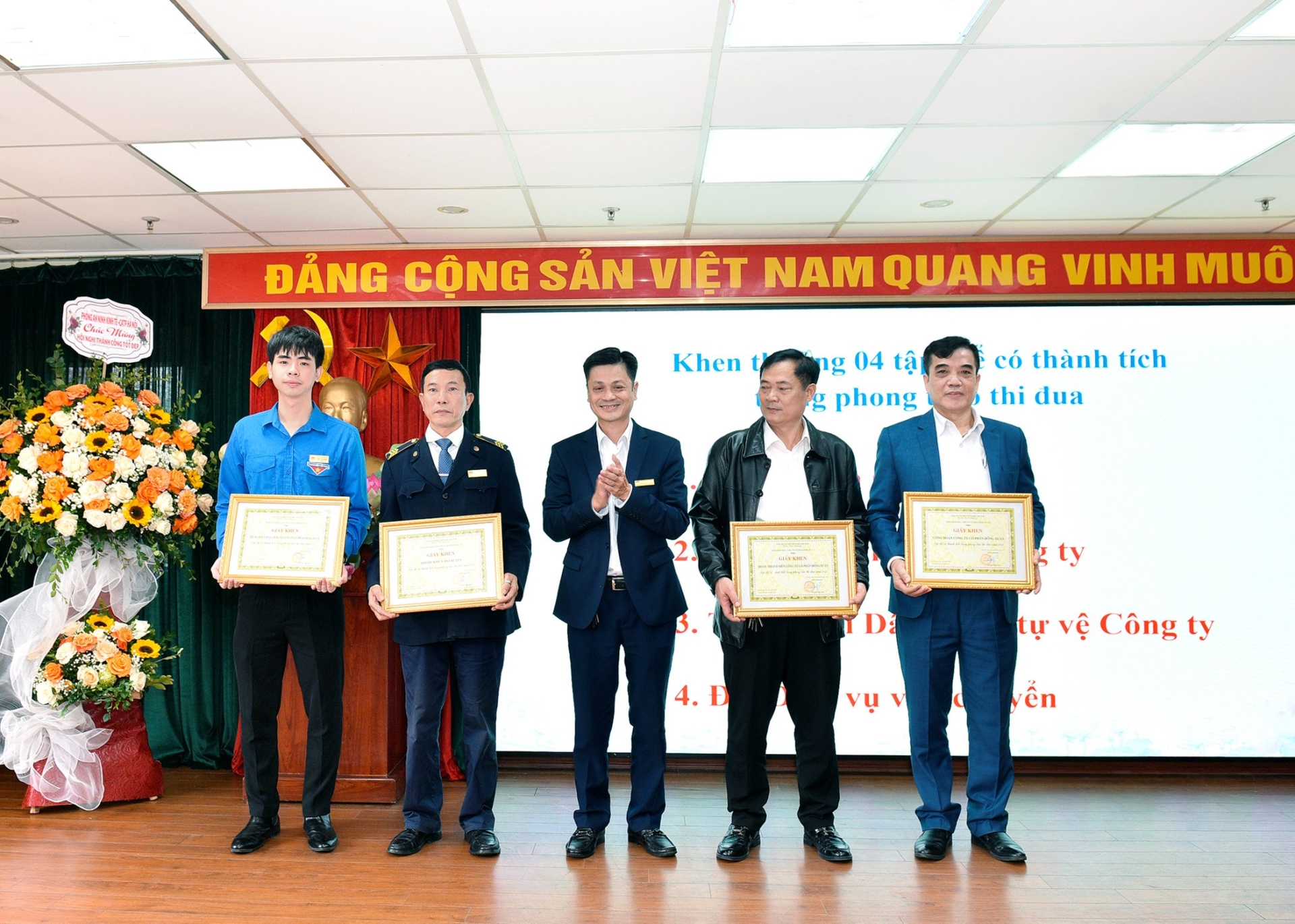 Đ/c Vũ Thành Kiên - Phó Tổng Giám đốc trao khen thưởng cho 04 tập thể có thành tích trong phong trào thi đua