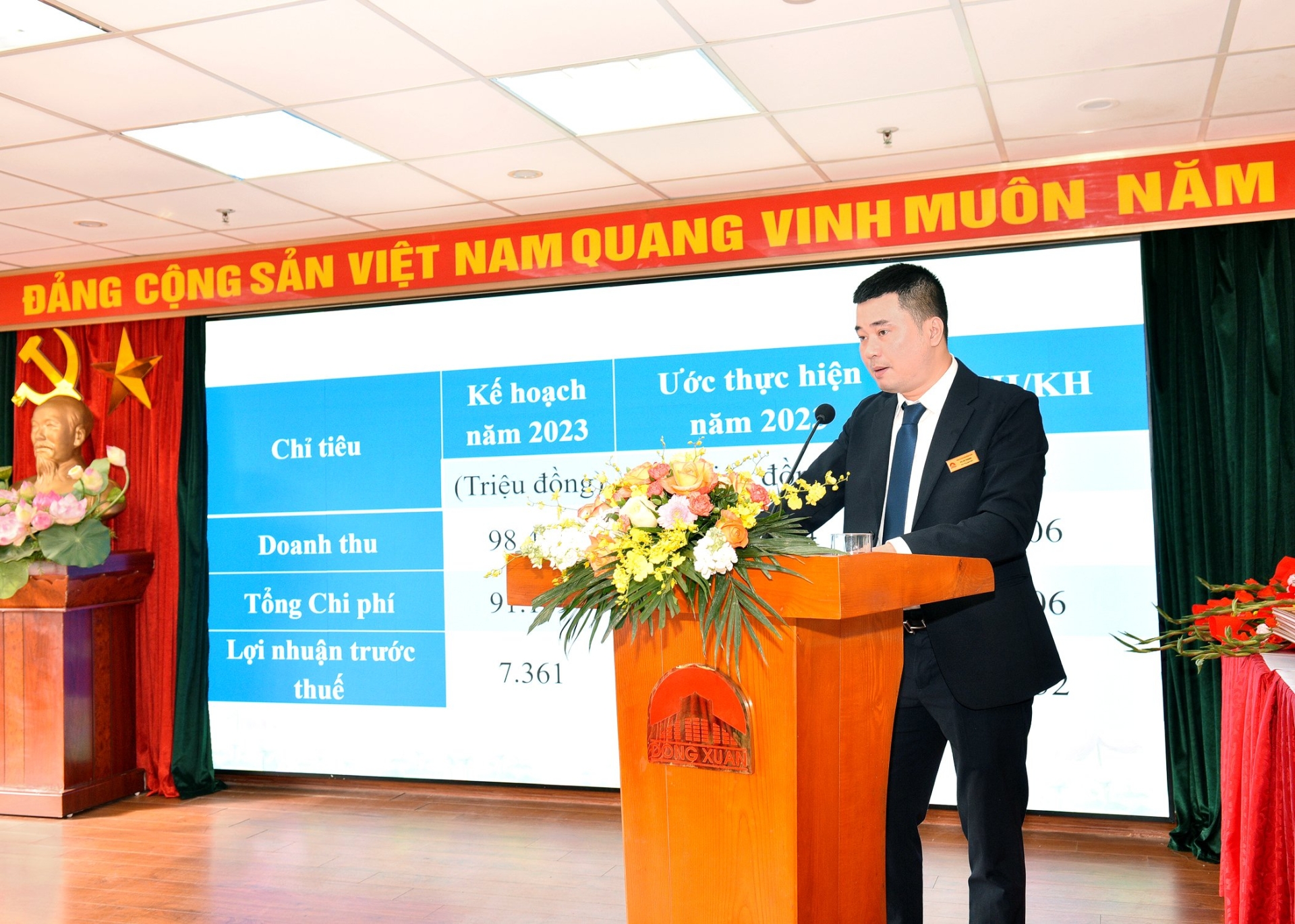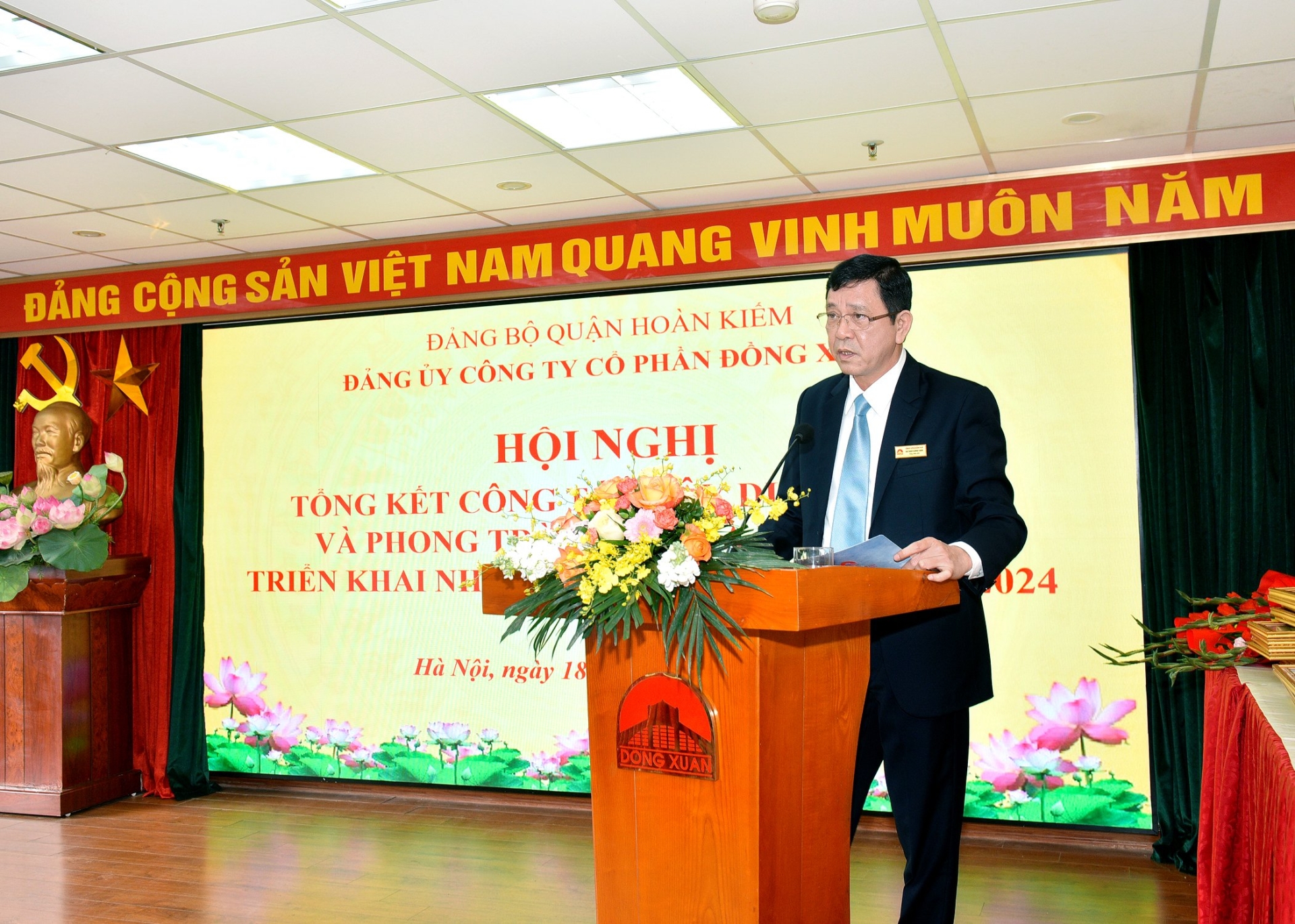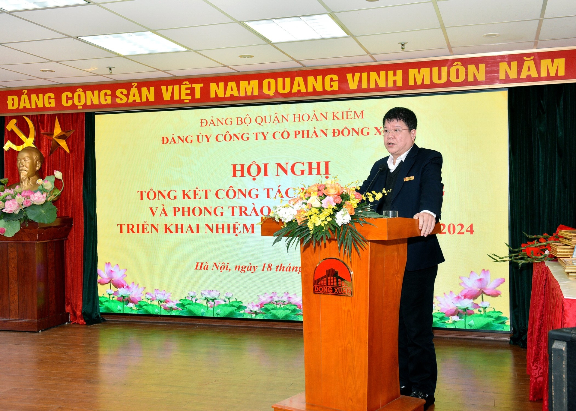 Hội nghị đã được nghe Đ/c Vũ Hà Thanh - Phó Tổng Giám đốc trình bày Báo cáo Tổng kết công tác Đảng và phong trao thi đua năm 2023. Qua đó, Năm 2023, Đảng bộ công ty đã lãnh đạo, chỉ đạo hoàn thành tốt các chỉ tiêu kế hoạch nhiệm vụ đề ra. Các nhiệm vụ trọng tâm được hoàn thành tốt, ANTT, an toàn PCCC tại chợ Đồng Xuân, chợ Đêm & Tuyến phố đi bộ được đảm bảo; công tác xây dựng Đảng, xây dựng các đoàn thể được quan tâm, hoạt động hiệu quả, vững mạnh. Đặc biệt, Đảng ủy đã quán triệt, triển khai có hiệu quả các văn bản của Trung ương, Thành ủy, Quận ủy về công tác xây dựng đảng, công tác cán bộ, triển khai thực hiện Luật dân chủ trong cơ quan và tại chợ Đồng Xuân, chợ Đêm và tuyến phố đi bộ. Đảng ủy đã phối hợp với Hội đồng quản trị, tổ quản lý vốn nhà nước tại Công ty tổ chức thành công Đại hội đồng cổ đông thương niên 2023 với nhiều nội dung quan trọng về phát triển Công ty trong thời gian tới.