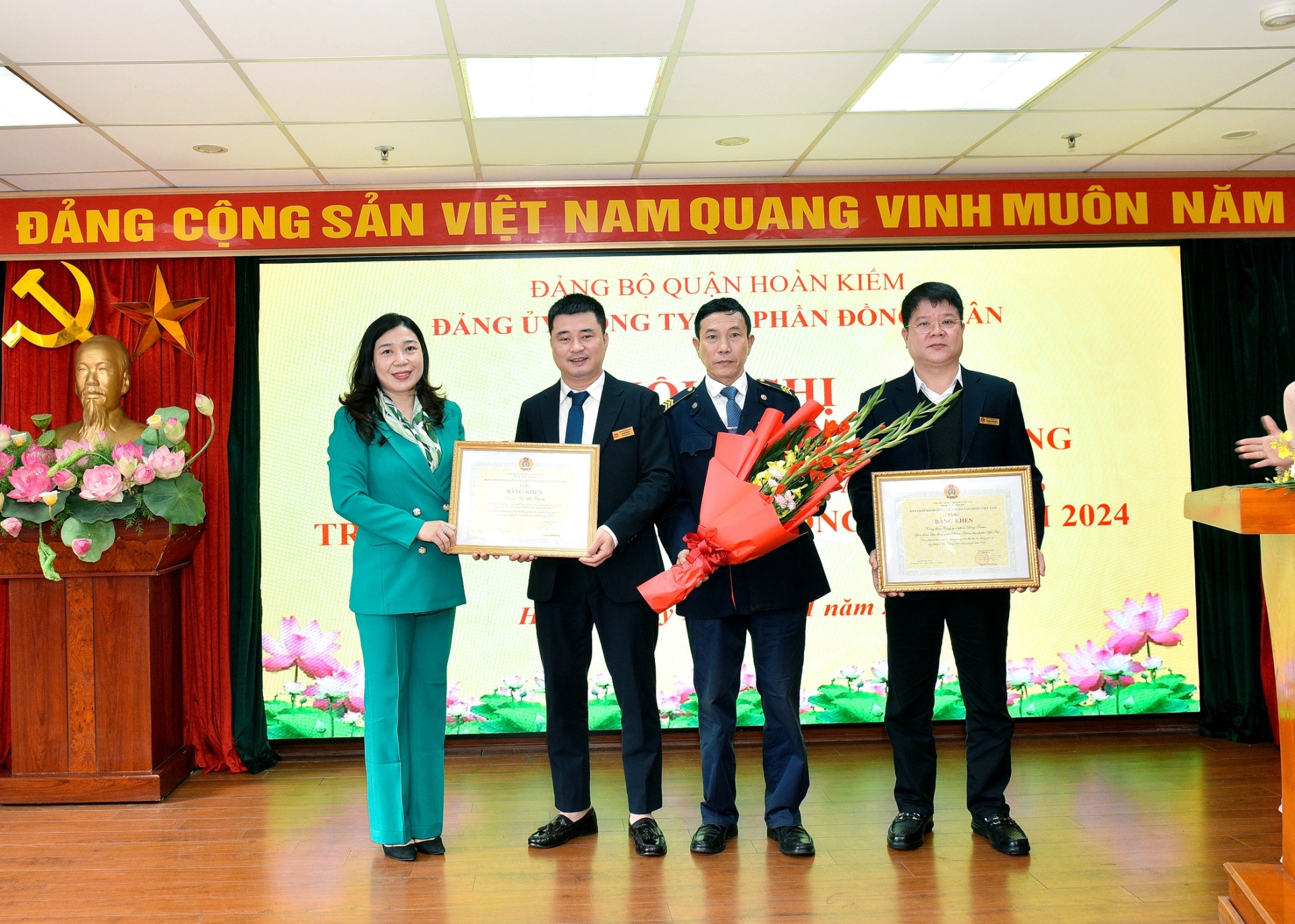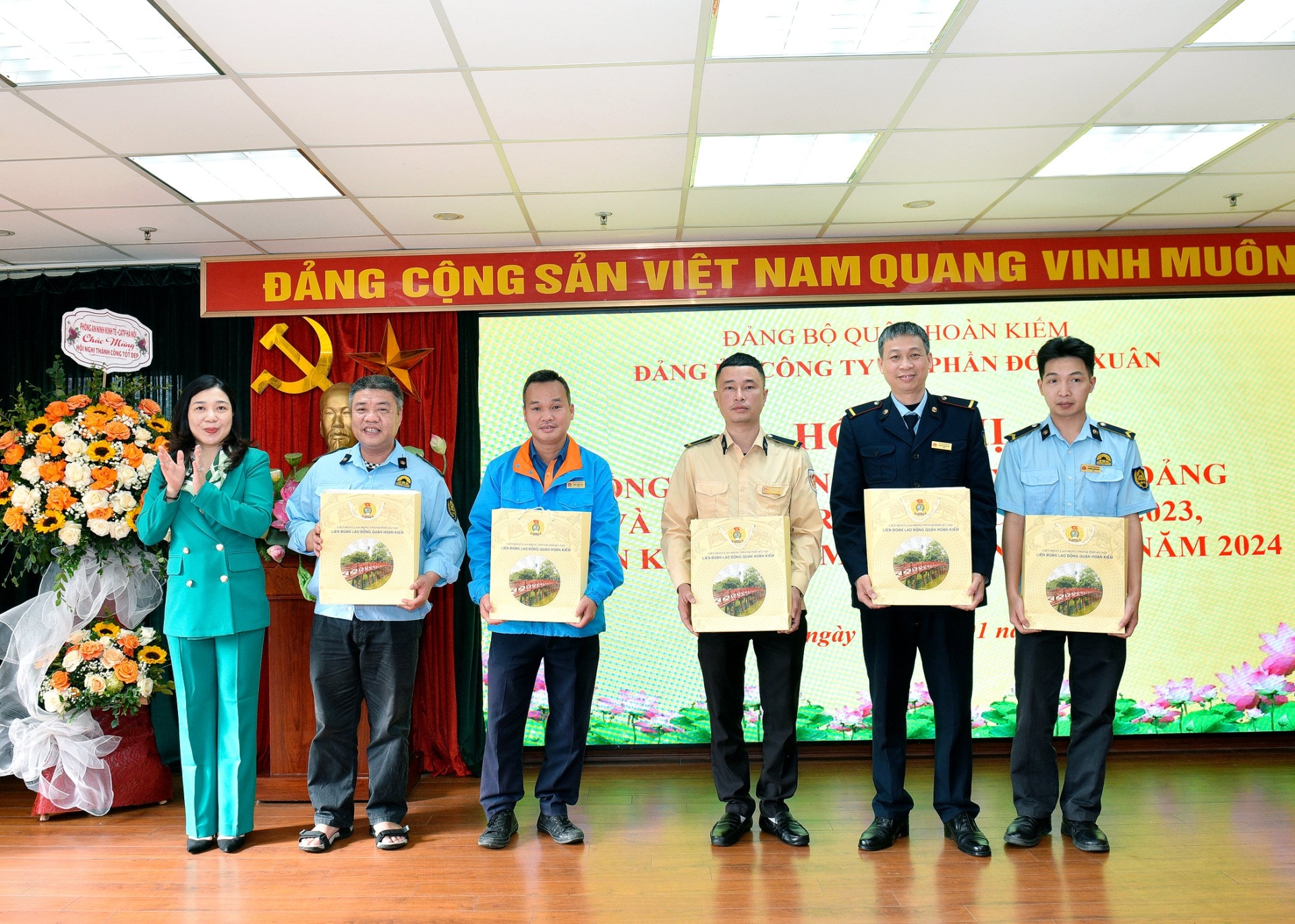 Tới dự Hội nghị có Đ/c Lê Anh Thư – QUV, Phó chủ tịch UBND quận Hoàn Kiếm cùng các Đ/c đại diện Sở Nội vụ, Sở Tài Chính, Sở Công thương, Đội PV 01, PV04 Công an Thành phố; các đồng chí đại diện các Ban Đảng Quận ủy, các phòng ban chuyên môn UBND quận Hoàn Kiếm, các phường liên kết. Về phía Công ty có các Đ/c trong BCH Đảng bộ, HĐQT, Ban điều hành Công ty; các Đ/c Bí thư, Phó bí thư, chi ủy viên các chi bộ, Trưởng phó các phòng, ban, đơn vị trực thuộc, đại diện Công Đoàn, Đoàn Thanh niên công ty và Hội Phụ nữ Chợ Đồng Xuân cùng các tập thể, cá nhân được khen thưởng.
