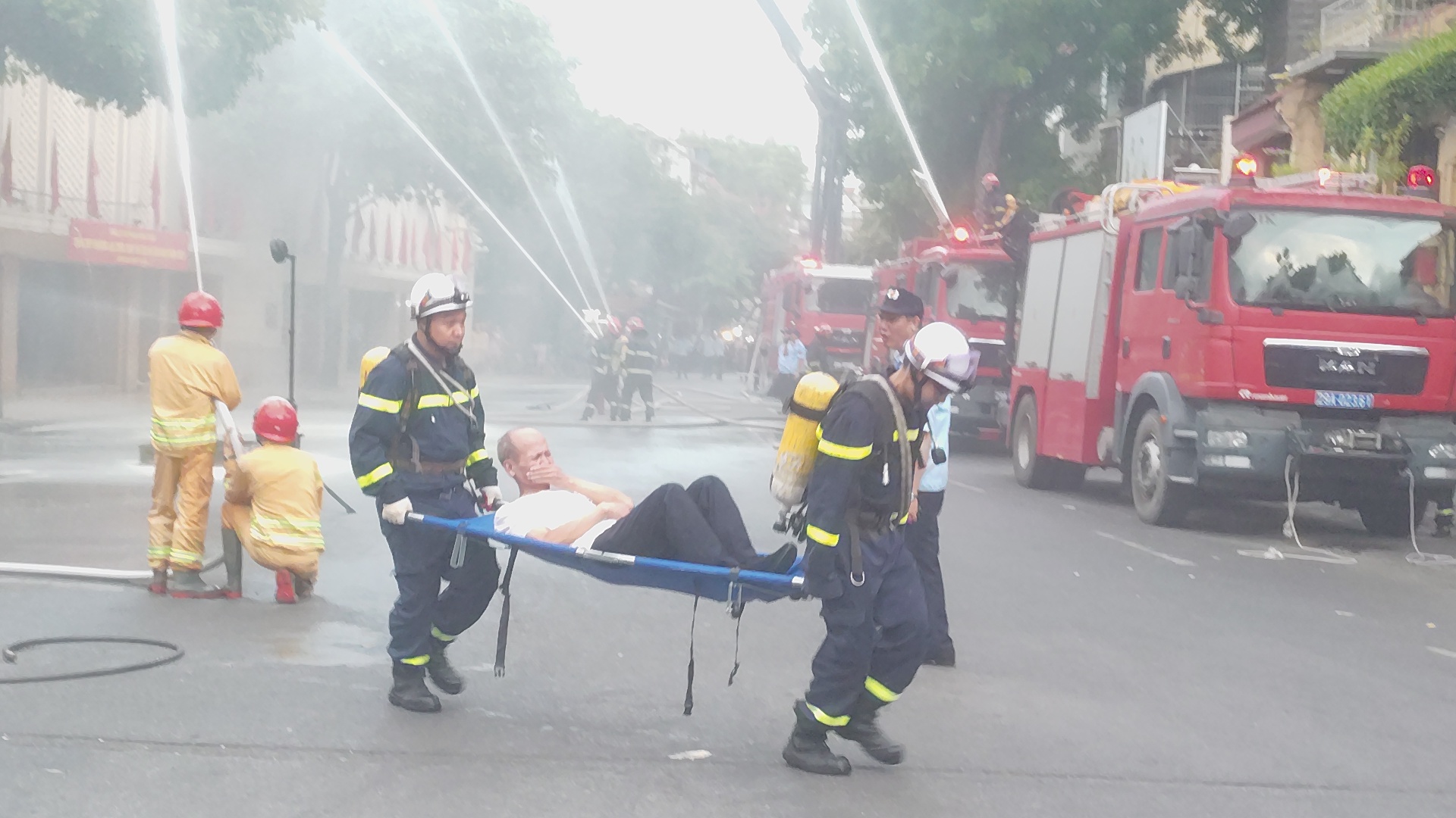 Các lực lượng diễn tập phương án chữa cháy và cứu nạn cứu hộ