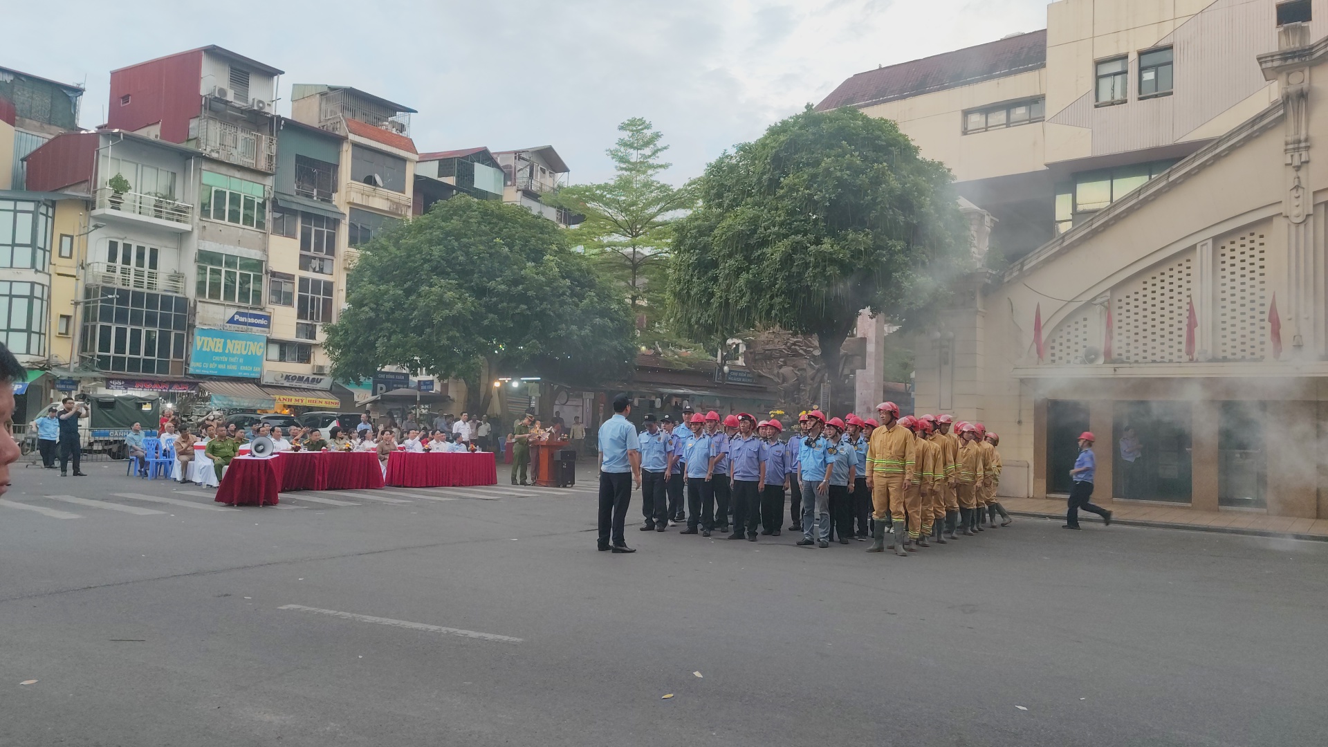 Tại khu vực cổng chính chợ Đồng Xuân, Công ty Cổ phần Đồng Xuân đã phối hợp với Đội Cảnh sát PCCC và CNCH – Công an quận Hoàn Kiếm diễn tập phương án chữa cháy và cứu nạn cứu hộ với hơn 50 CBCS Cảnh sát PCCC&CNCH và các lực lượng khác tham gia.