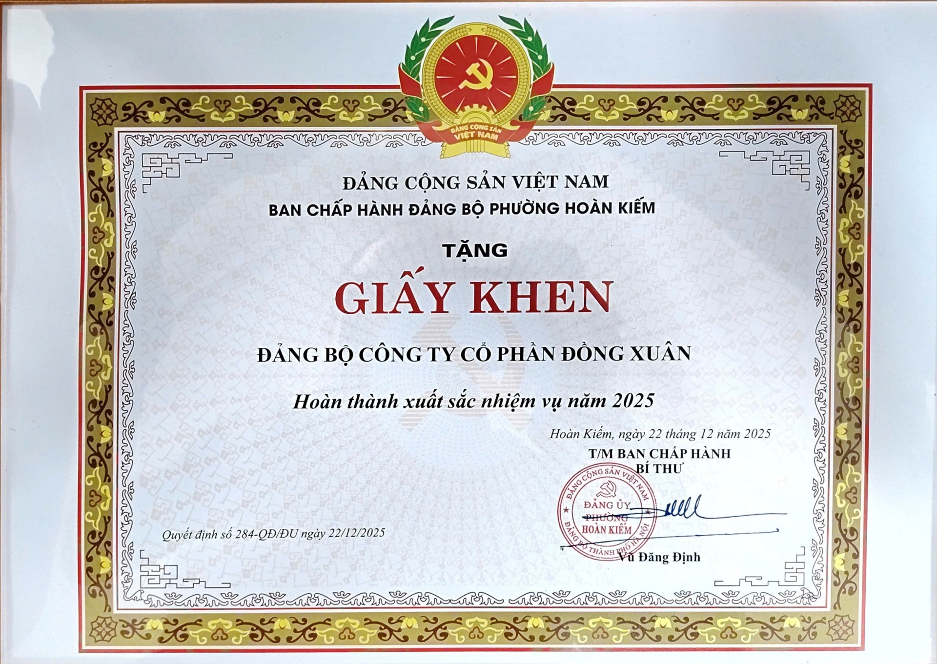Trong năm 2025, Đảng bộ Công ty Cổ phần Đồng Xuân đã phát huy rõ nét vai trò hạt nhân lãnh đạo, chỉ đạo tổ chức thành công Đại hội Đảng bộ Công ty nhiệm kỳ 2025–2030 (Đại hội điểm khối Doanh nghiệp quận Hoàn Kiếm), bảo đảm đúng nguyên tắc, quy trình và tiến độ theo chỉ đạo của các cấp. Đại hội đã xác định rõ mục tiêu, phương hướng phát triển trong giai đoạn mới, tạo nền tảng chính trị vững chắc cho việc triển khai các nhiệm vụ chiến lược của Công ty trong thời gian tới.