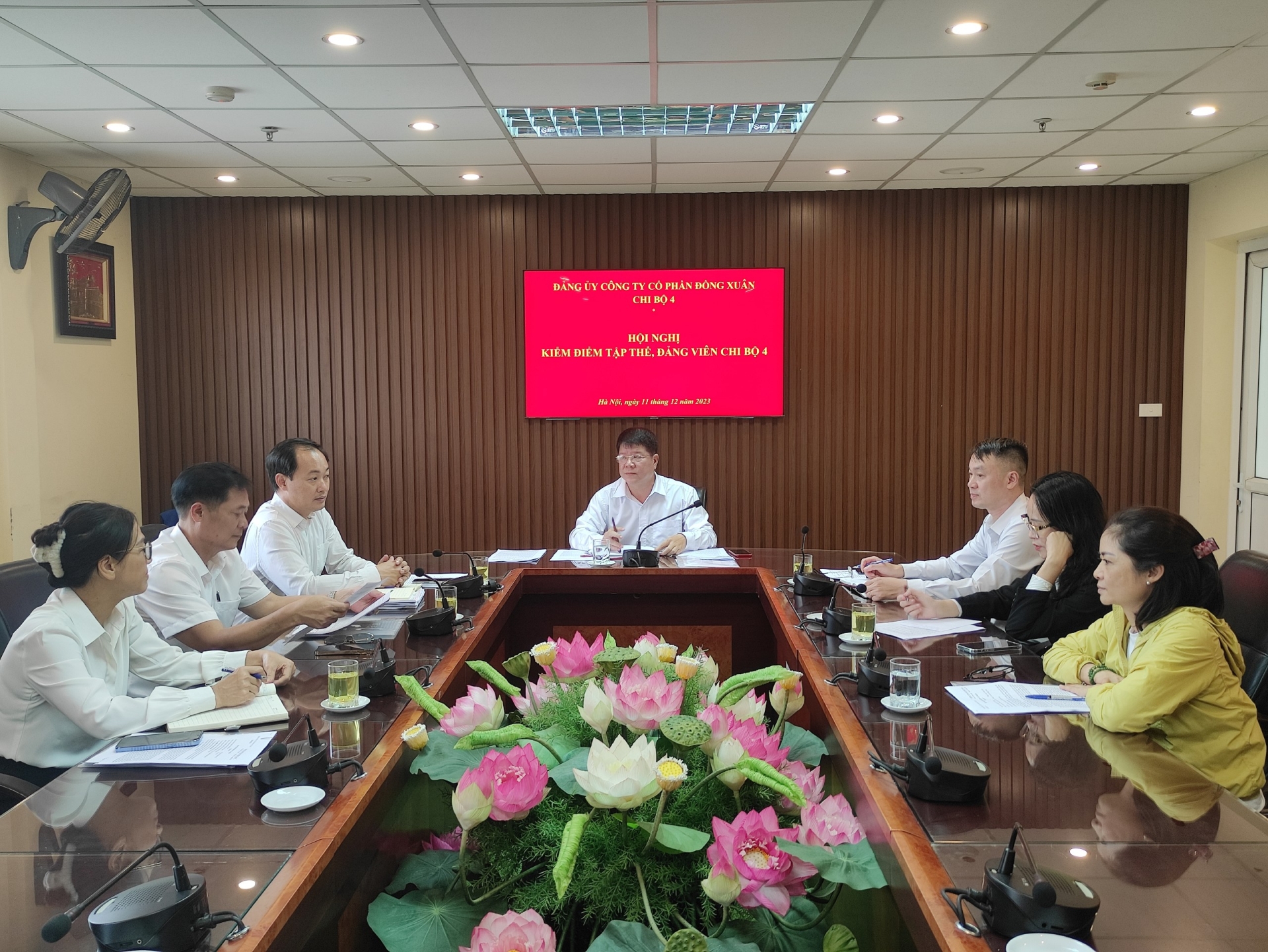 Đảng bộ Công ty Cổ phần Đồng Xuân có 06 chi bộ trực thuộc với tổng số 78 Đảng viên. Thực hiện Kế hoạch số 131-KH/QU, ngày 15/11/2023 của Quận ủy Hoàn Kiếm về “Kiểm điểm, đánh giá, xếp loại chất lượng hằng năm đối với tổ chức đảng, đảng viên và tập thể, cá nhân cán bộ lãnh đạo, quản lý”, Công ty Cổ phần Đồng Xuân đã triển khai Kế hoạch kiểm điểm và yêu cầu các chi bộ nghiêm túc thực hiện việc kiểm điểm, đánh giá, xếp loại chất lượng đối với tập thể, đảng viên.