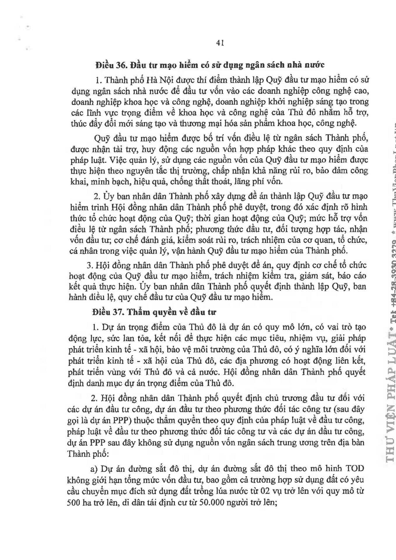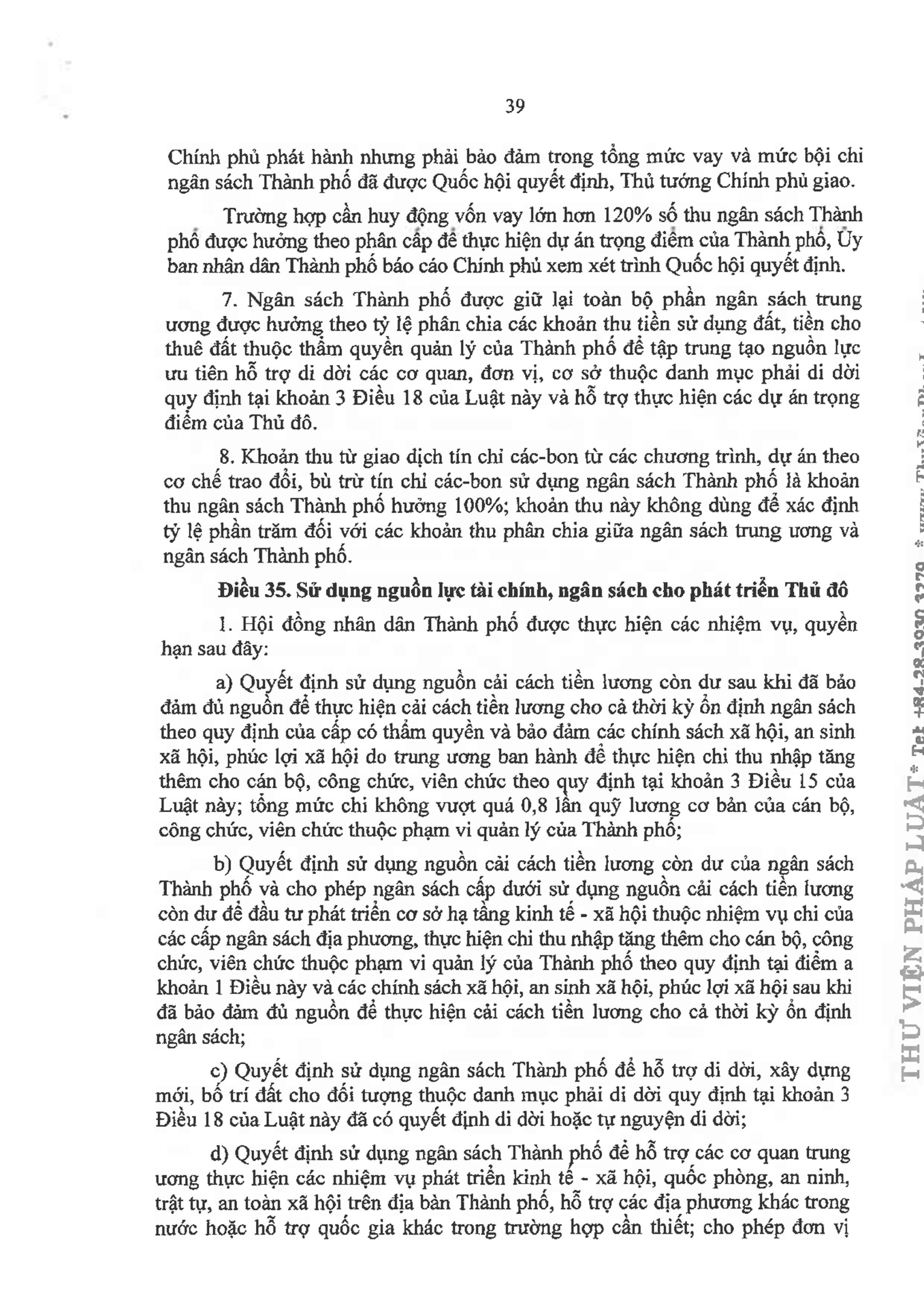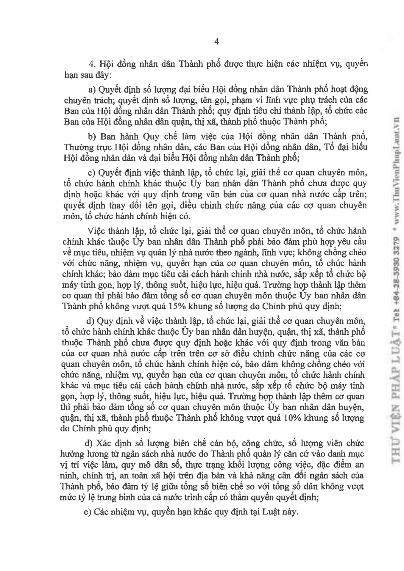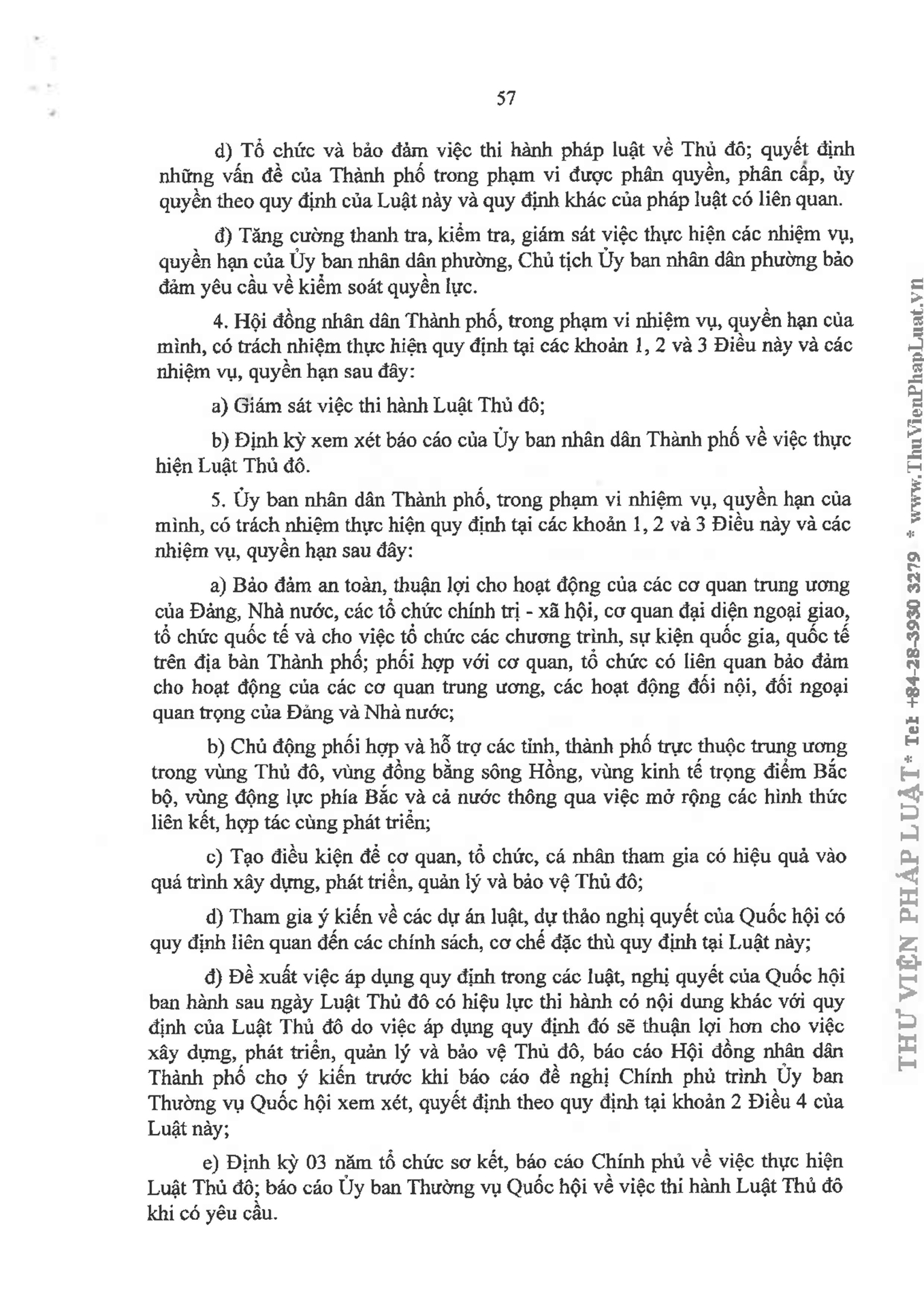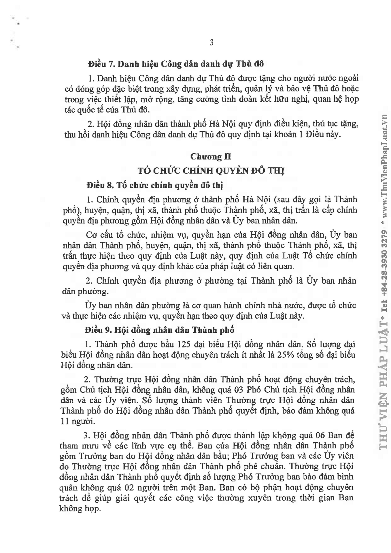 Đáng chú ý, Luật quy định, HĐND TP Hà Nội được bầu 125 đại biểu HĐND. Số lượng đại biểu HĐND hoạt động chuyên trách ít nhất là 25% tổng số đại biểu HĐND. Thường trực HĐND TP Hà Nội hoạt động chuyên trách, gồm Chủ tịch HĐND, không quá 3 phó chủ tịch HĐND và các ủy viên. Số lượng thành viên Thường trực HĐND thành phố do HĐND thành phố quyết định, bảo đảm không quá 11 người.