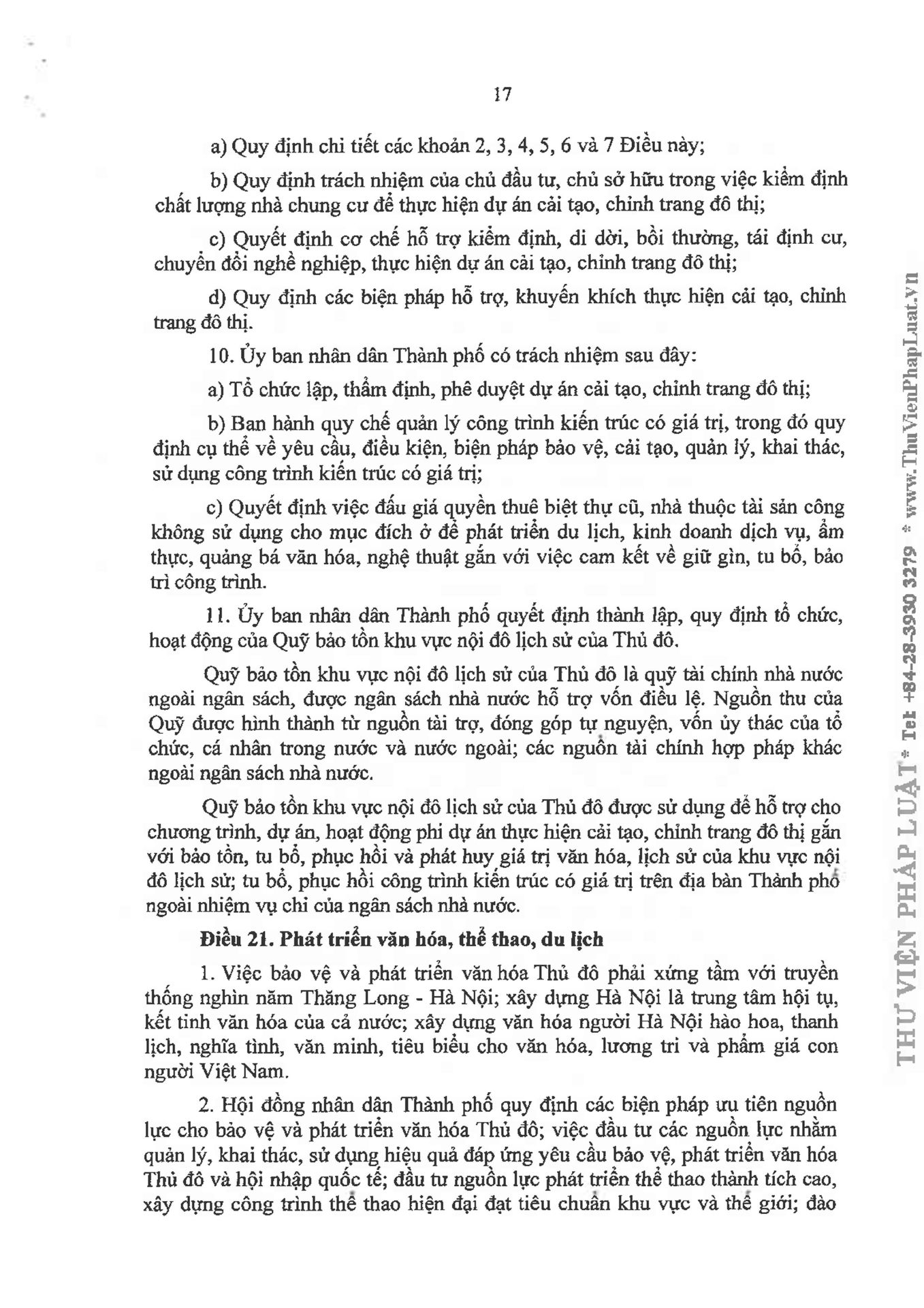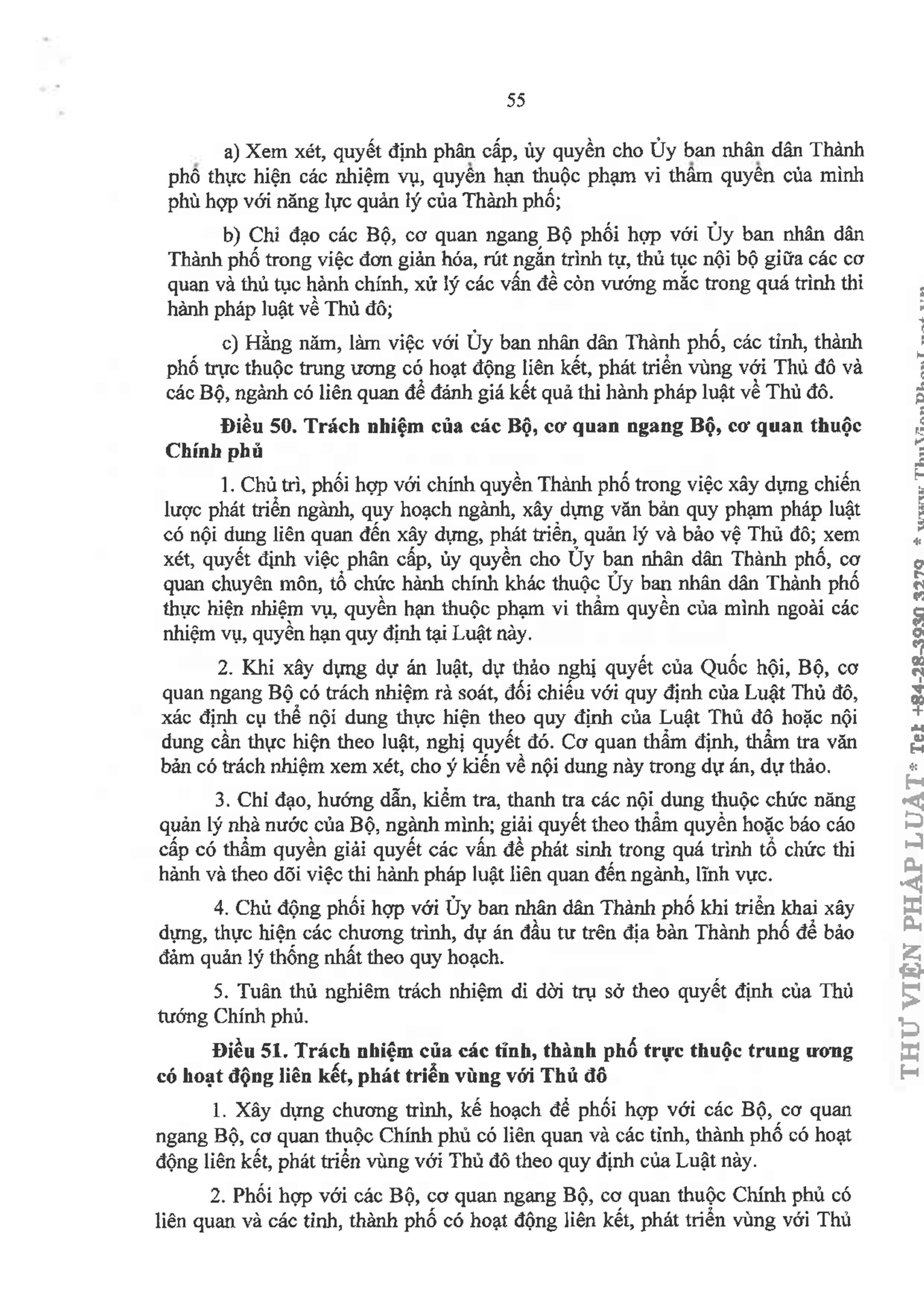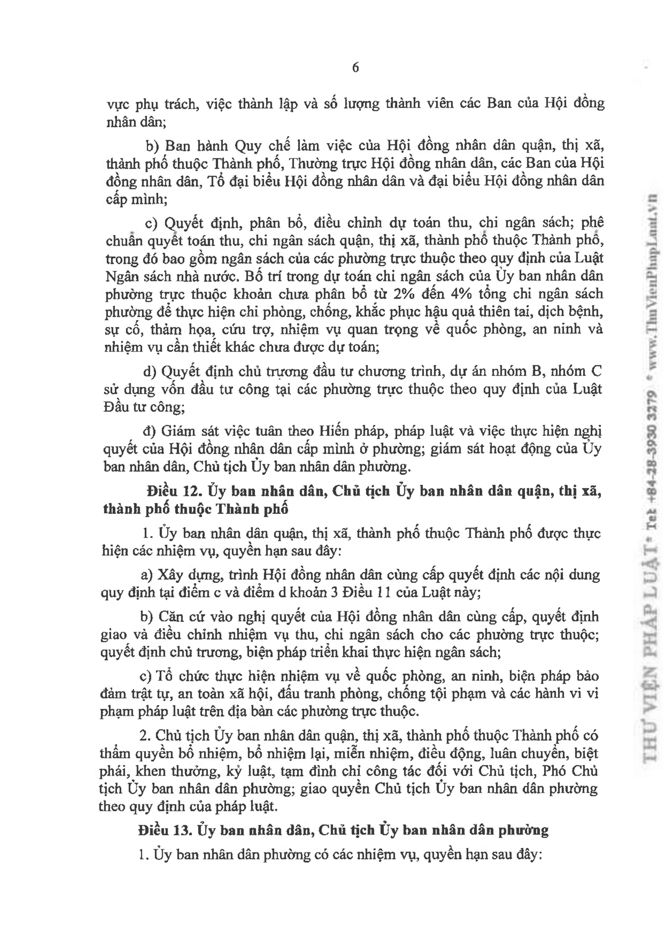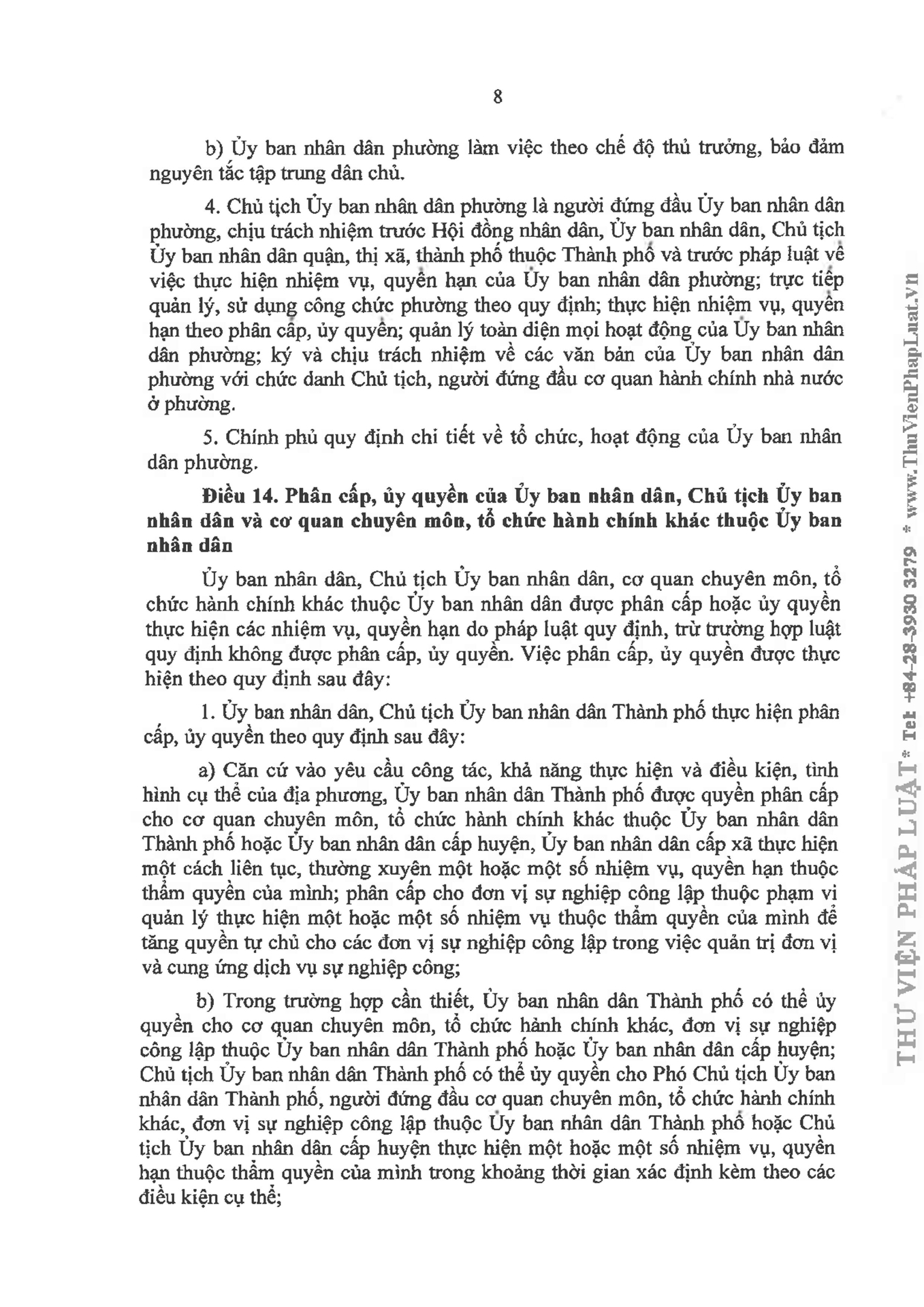 Đồng thời, bổ sung thẩm quyền của UBND phường trong việc quyết định các nội dung mà theo quy định trong các văn bản quy phạm pháp luật khác phải do HĐND cấp xã quyết định hoặc phải được HĐND cấp xã thông qua trước khi quyết định hoặc trình cấp có thẩm quyền xem xét, quyết định. Cùng với quy định về việc phân cấp, ủy quyền giữa các cấp chính quyền của TP Hà Nội, dự thảo luật đã bổ sung quy định về việc phân cấp, ủy quyền của Chính phủ, Thủ tướng Chính phủ, bộ, ngành cho các cơ quan của TP Hà Nội (Điều 49 và Điều 50) để cụ thể hóa chủ trương đẩy mạnh phân cấp, ủy quyền.
