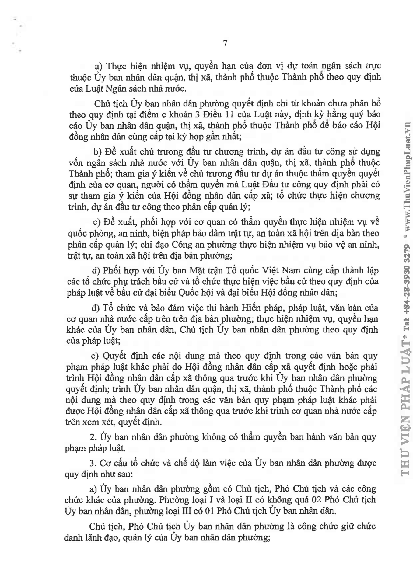 Chính quyền địa phương ở phường tại thành phố là UBND phường - là cơ quan hành chính nhà nước, được tổ chức và thực hiện các nhiệm vụ, quyền hạn theo quy định của luật này.
