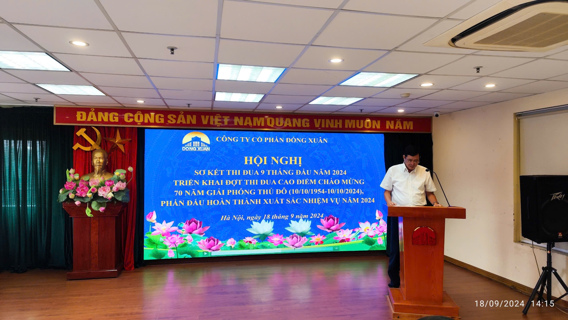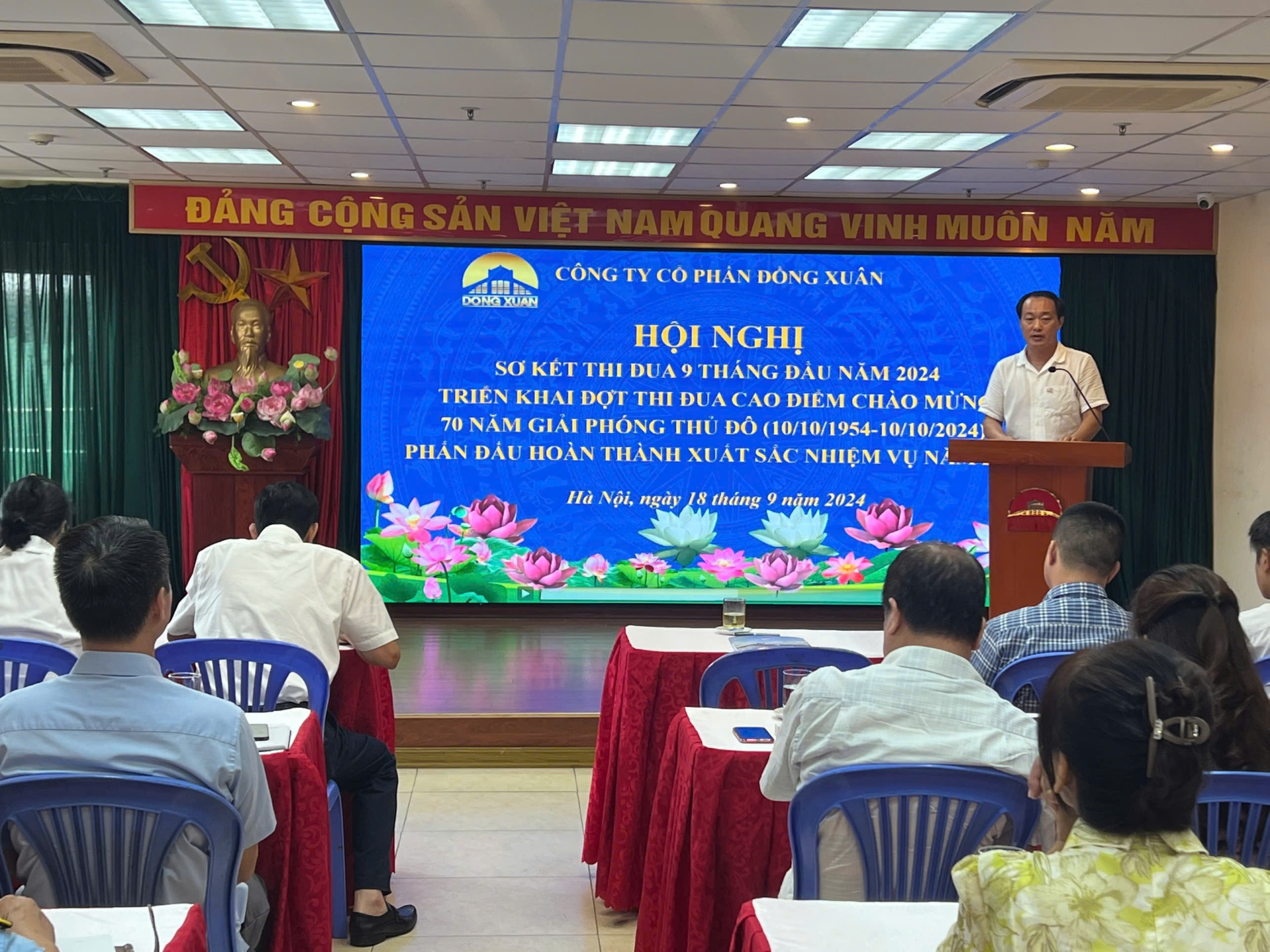 Được sự phân công, Đ/c Hoàng Công Anh – Phó Bí thư Đảng ủy, Tổng Giám đốc Công ty đã báo cáo sơ kết thi đua 9 tháng đầu năm 2024 và triển khai đợt thi đua cao điểm phấn đấu hoàn thành xuất sắc các chỉ tiêu kế hoạch năm 2024, lập thành tích chào mừng kỷ niệm 70 năm ngày Giải phóng Thủ đô (10/10/1954-10/10/2024). Đợt thi đua cao điểm nhằm tạo khí thế sôi nổi, thu hút đông đảo cán bộ, đảng viên, người lao động Công ty tích cực hưởng ứng thi đua, lập thành tích hoàn thành xuất sắc nhiệm vụ kinh doanh năm 2024, tạo tiền đề cho năm 2025 và những năm tiếp theo. Cùng với đó nâng cao trách nhiệm của tập thể, cá nhân trong việc thực hiện nhiệm vụ của Công ty; tăng cường sự tham gia của các tổ chức đoàn thể trong phát triển Công ty và xây dựng chợ Đồng Xuân an toàn, văn minh, hiệu quả.