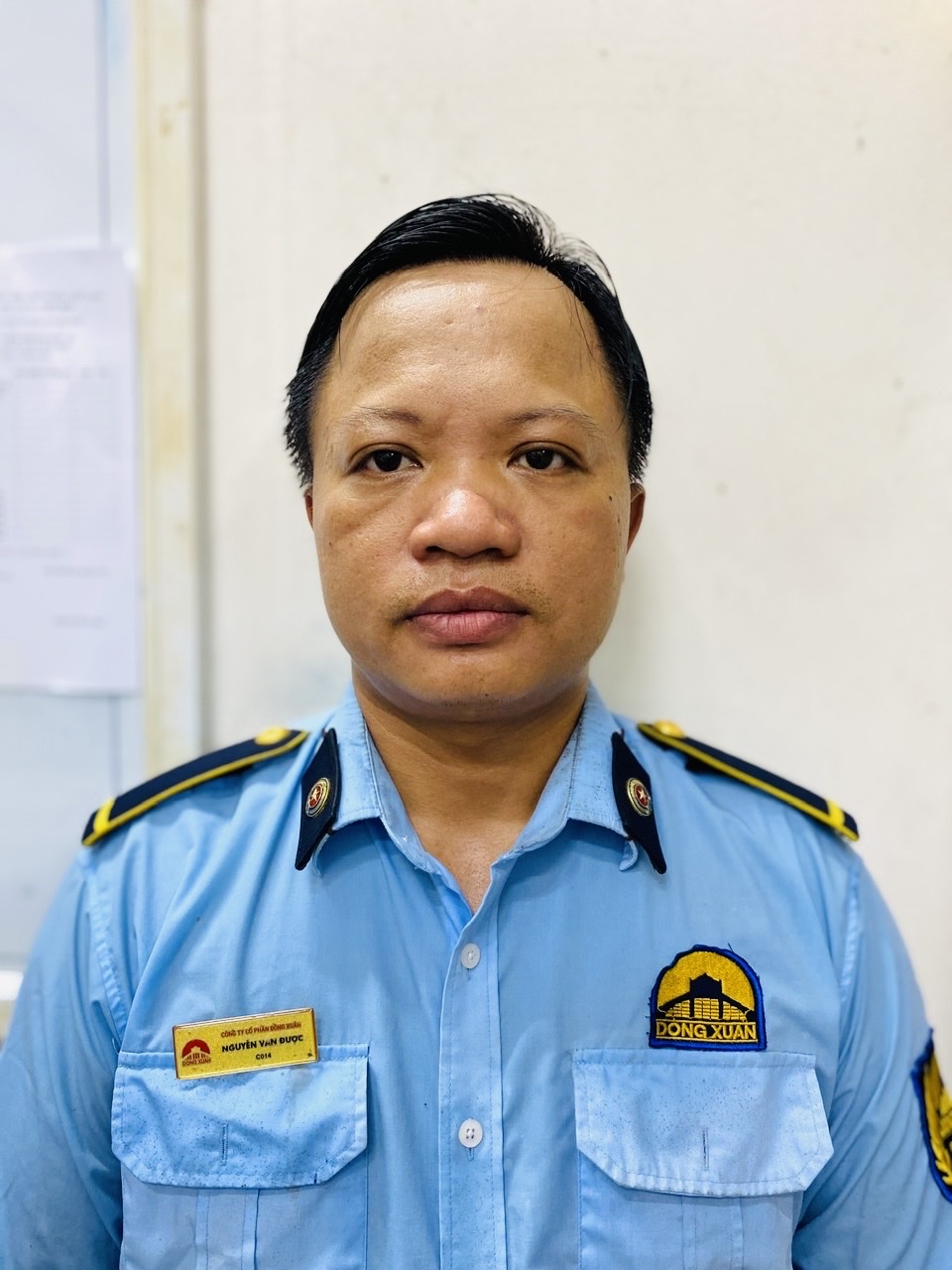 Anh Được năm nay đã ngoài 40 tuổi, với làn da ngăm bánh mật, dáng người đậm, khoẻ mạnh, giọng nói sang sảng đầy nội lực, ánh mắt lúc nào cũng toát lên vẻ hiền lành, chăm chỉ, chưa bao giờ nhìn thấy anh sự mệt mỏi và nản chí ở con người anh. Công việc của anh bắt đầu từ 17h chiều hôm trước đến 6h sáng hôm sau. Trong suốt ca trực, anh liên tục đi kiểm tra các địa bàn trong, ngoài khu vực chợ Đồng Xuân, kiểm tra các dãy hàng, các cánh cửa, khoá quầy, hệ thống điện, hệ thống phòng cháy chữa cháy bất cứ lúc nào có dấu hiệu bất thường phải kịp thời xử lý ngay để giữ an toàn cho chợ. Công việc tưởng chừng như đơn giản nhưng đòi hỏi lúc nào cũng phải tỉnh táo cao độ, tinh thần trách nhiệm cao và sự kiên nhẫn lớn lao. Bởi vì trong tâm anh luôn có ý thức luôn tự nhắc nhở bản thân rằng “ Xểnh một ly, đi một dặm “.